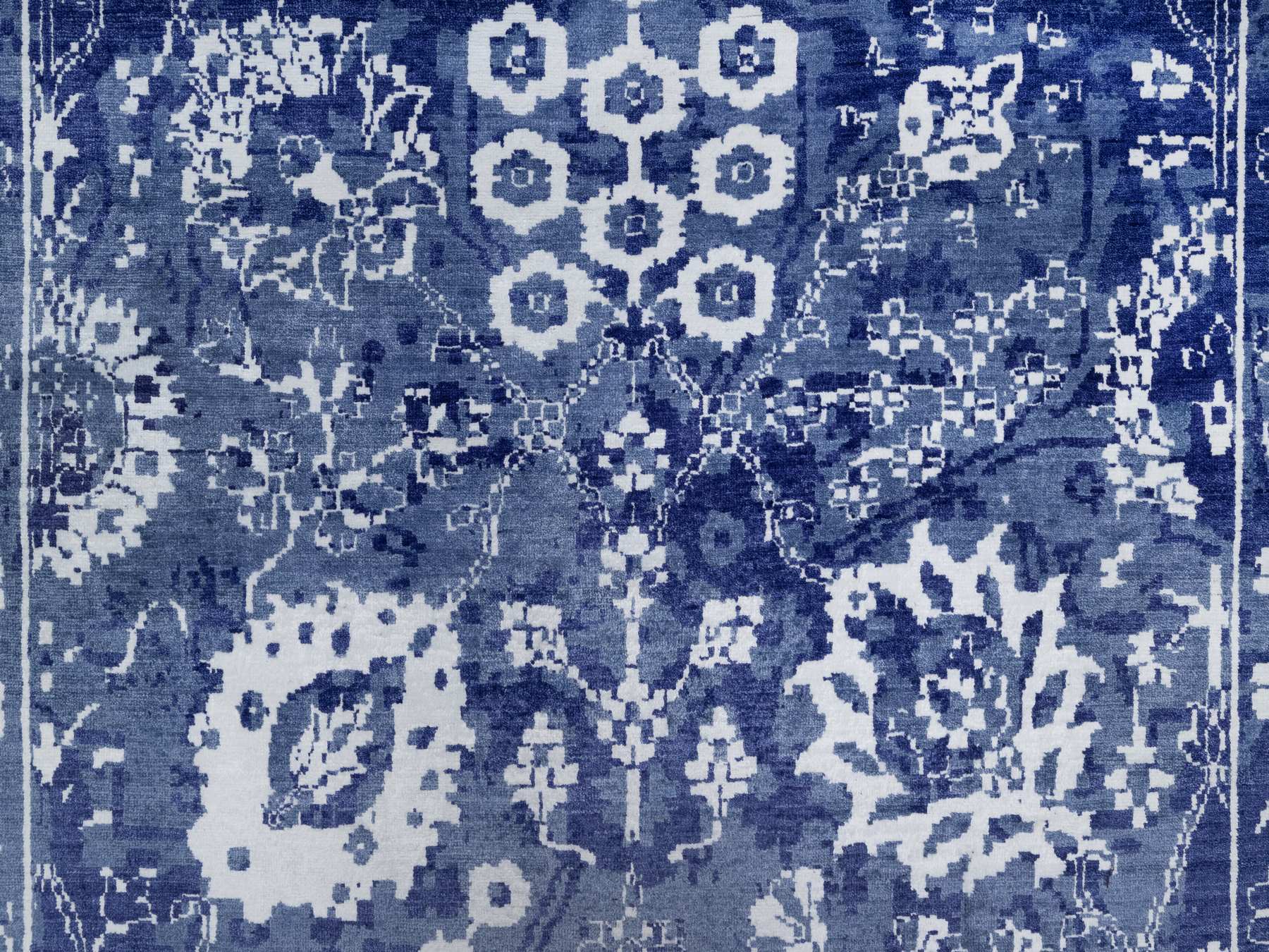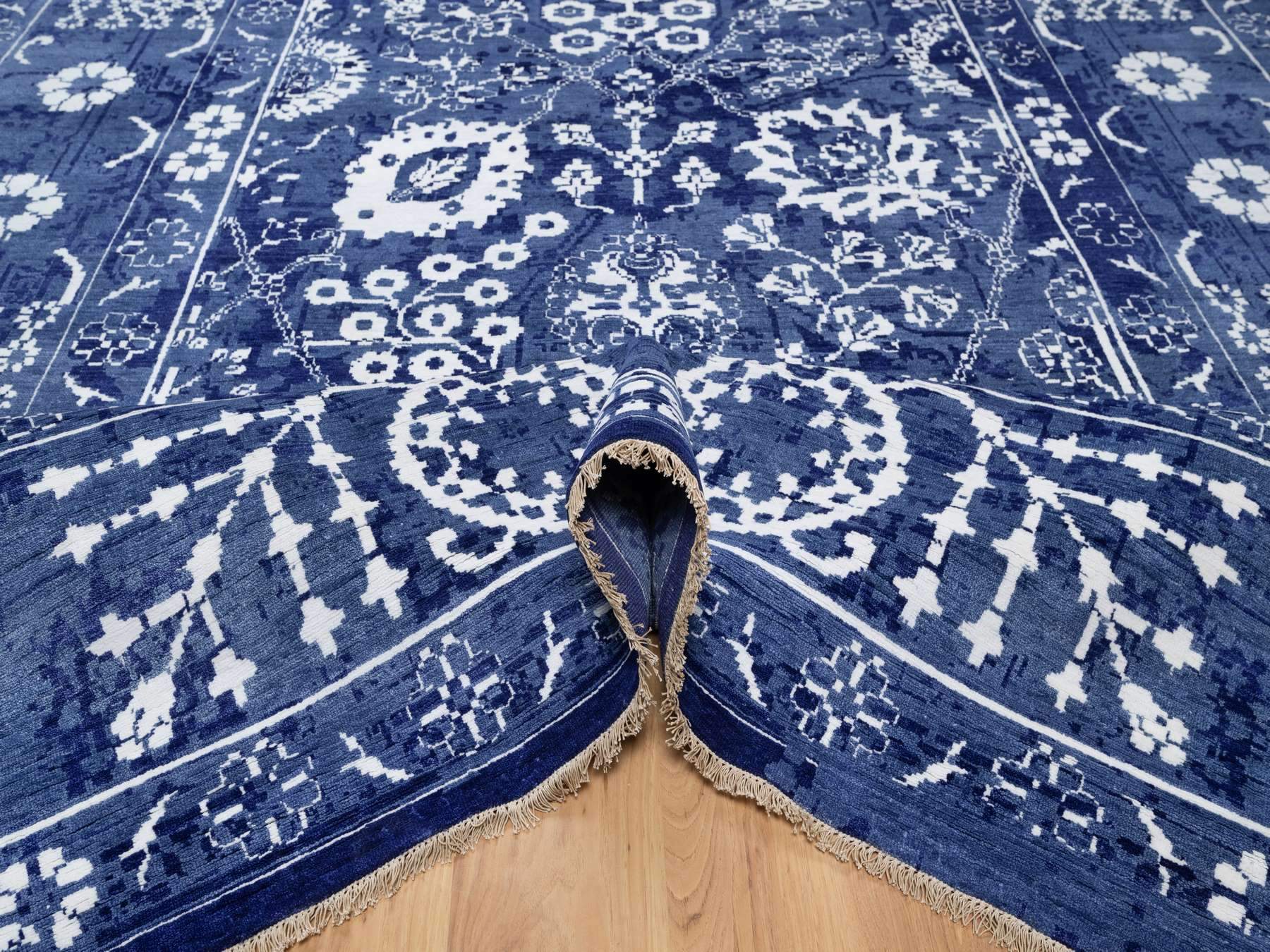 9'0" x 12'0" New Hand Knotted Blue Wool & Silk Rectangle Oriental Rug - MOA10291222