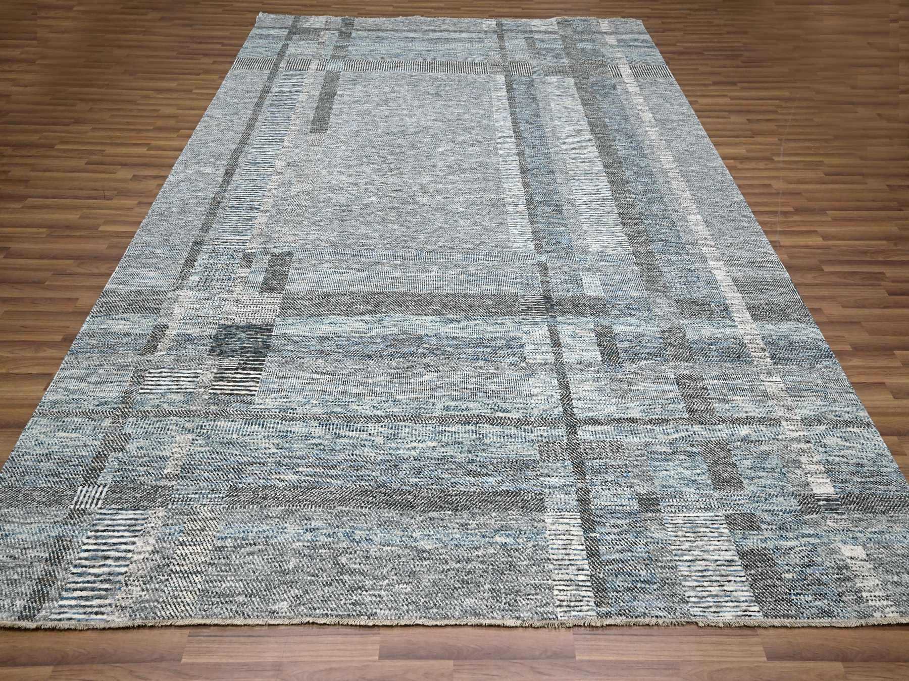 9'0" x 12'1" New Hand Knotted Blue Wool Rectangle Oriental Rug - MOA10276152