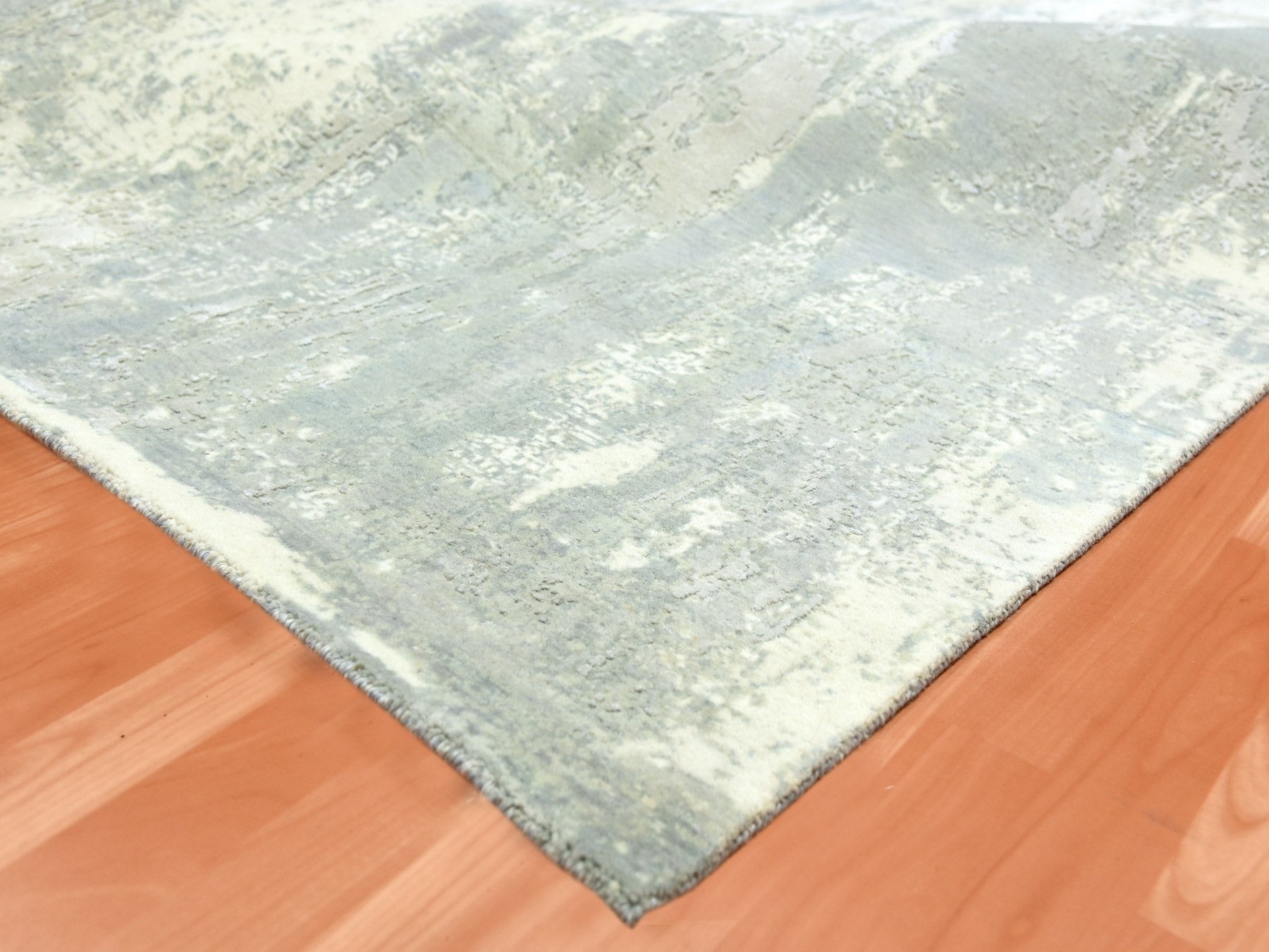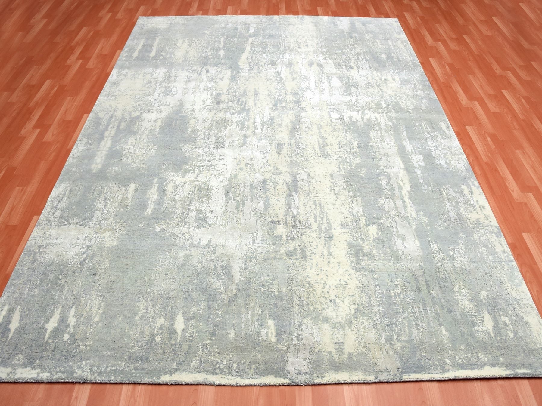 9'0" x 12'1" New Hand Knotted Grey Wool & Silk Rectangle Oriental Rug - MOA10275289