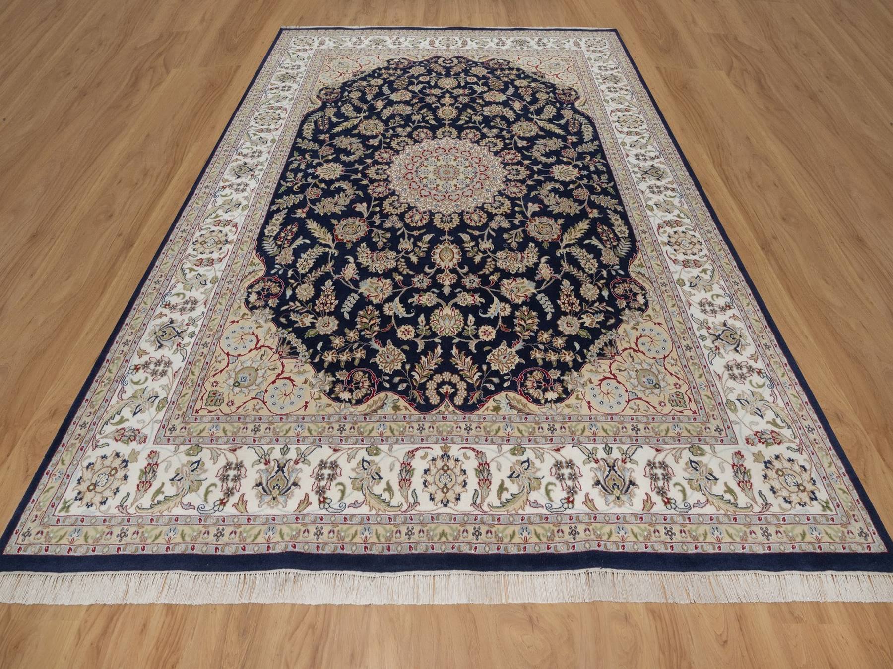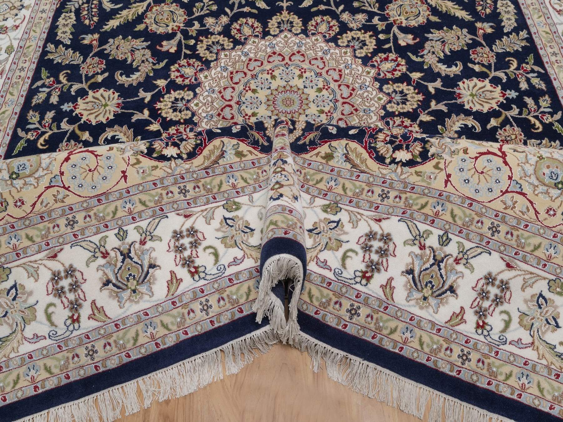 9'0" x 12'2" New Hand Knotted Blue Wool & Silk Rectangle Oriental Rug - MOA10291608