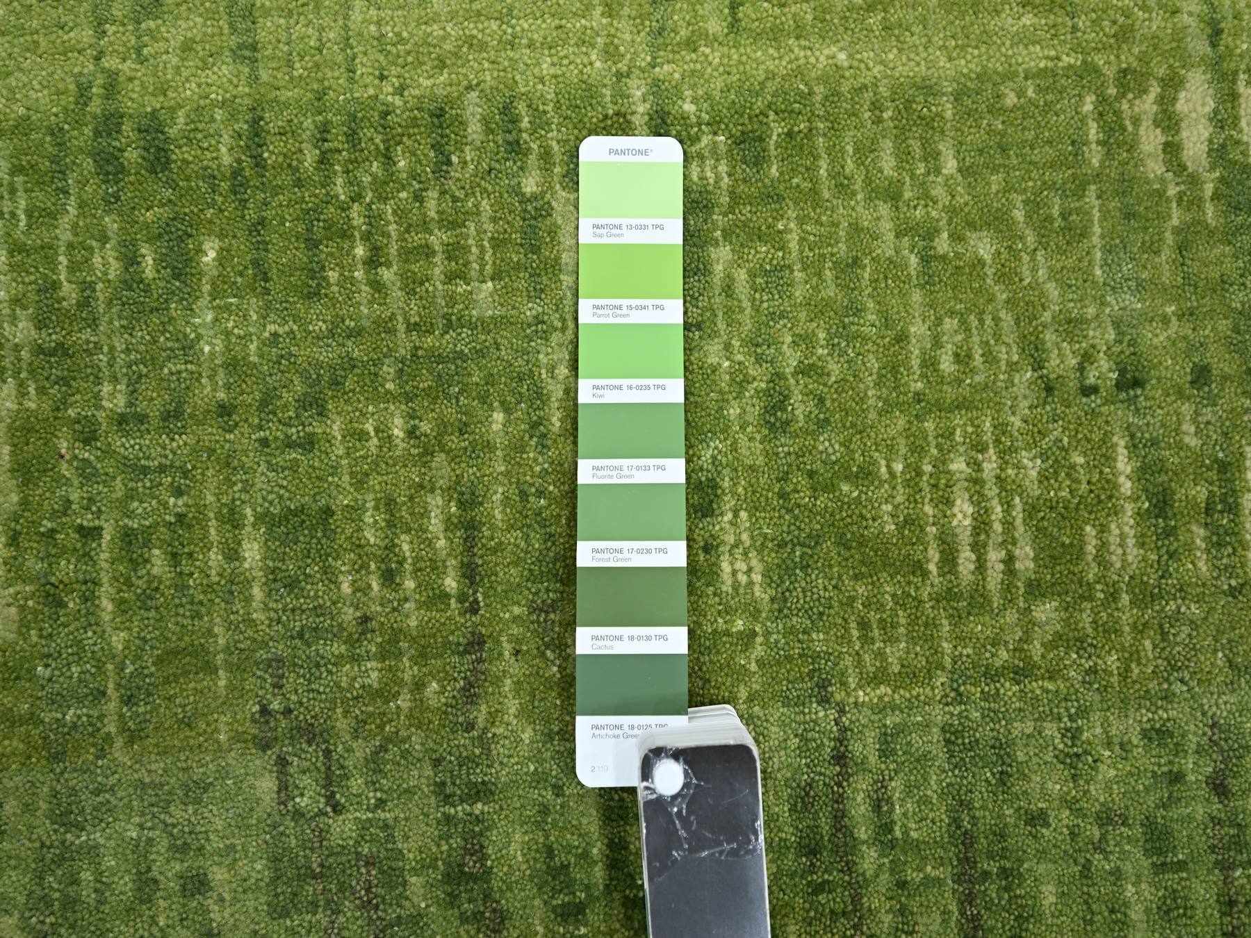 9'0" x 12'3" New Hand Knotted Green Wool Rectangle Oriental Rug - MOA10275482