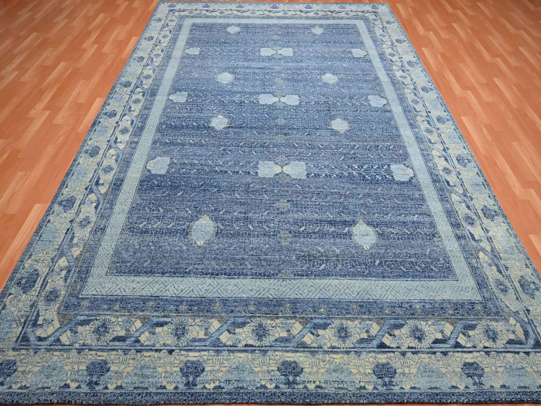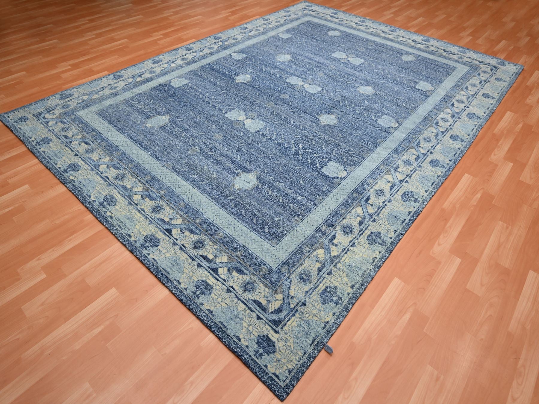 9'0" x 12'5" New Hand Knotted Blue Wool Rectangle Oriental Rug - MOA10275491