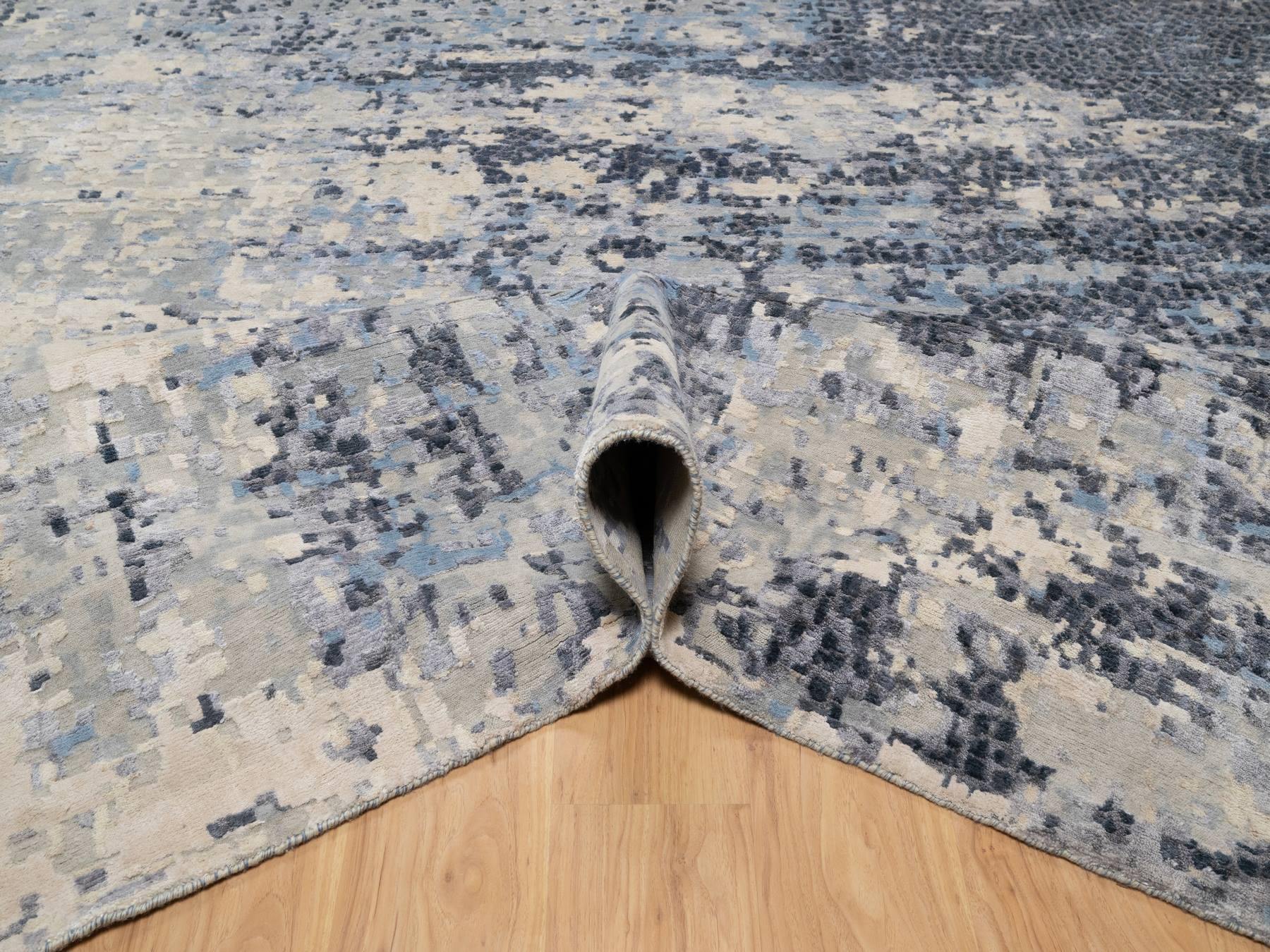 9'10" x 13'7" New Hand Knotted Blue Wool & Silk Rectangle Oriental Rug - MOA10290806
