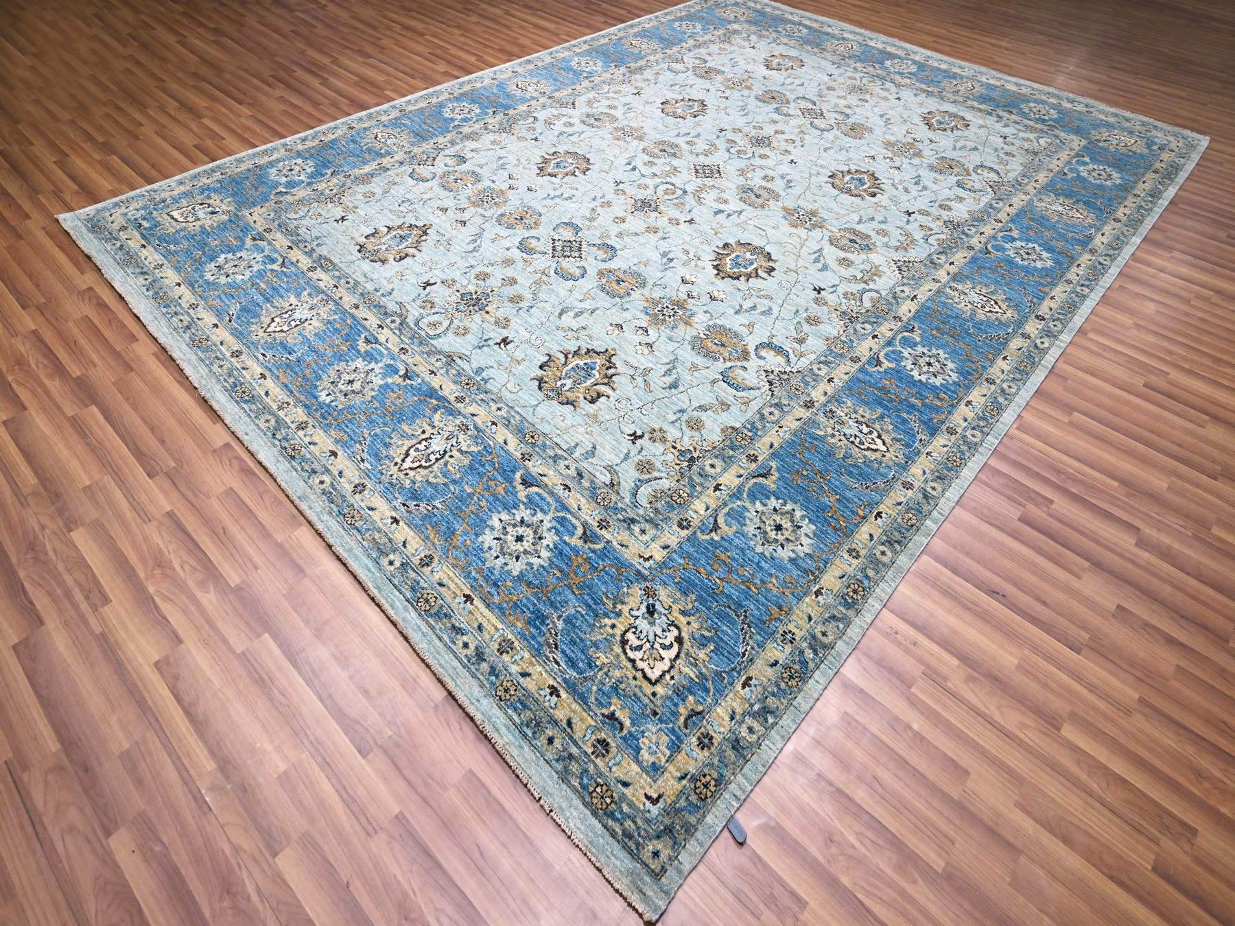 9'10" x 13'9" New Hand Knotted Blue Wool Rectangle Oriental Rug - MOA10276122
