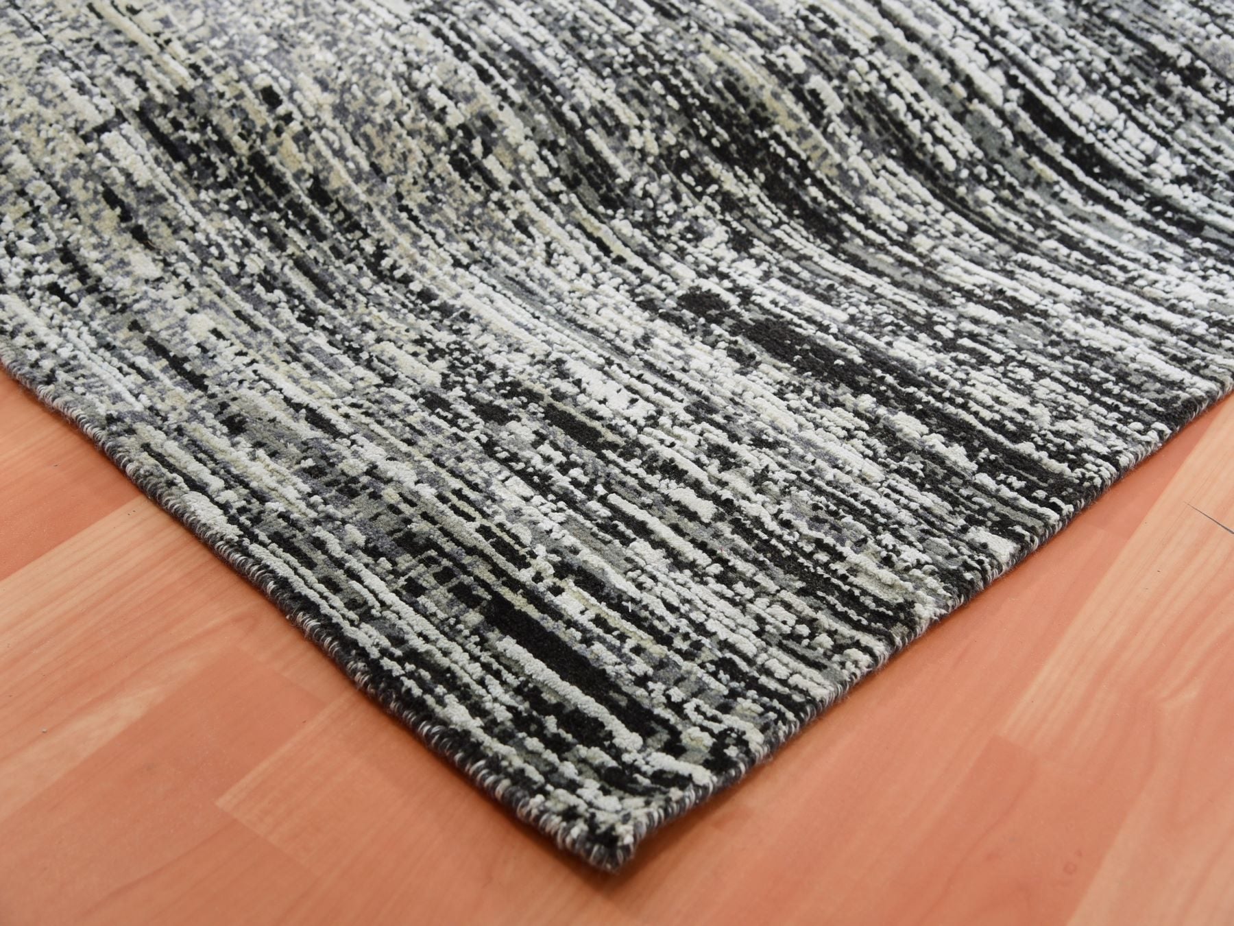 9'10" x 14'0" New Hand Knotted Black Wool & Silk Rectangle Oriental Rug - MOA10275335