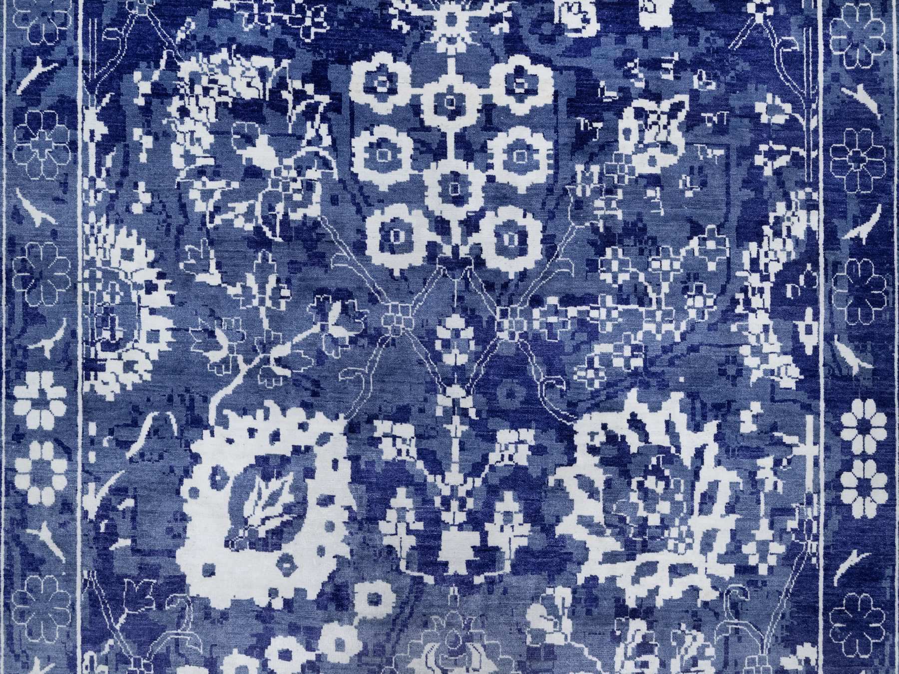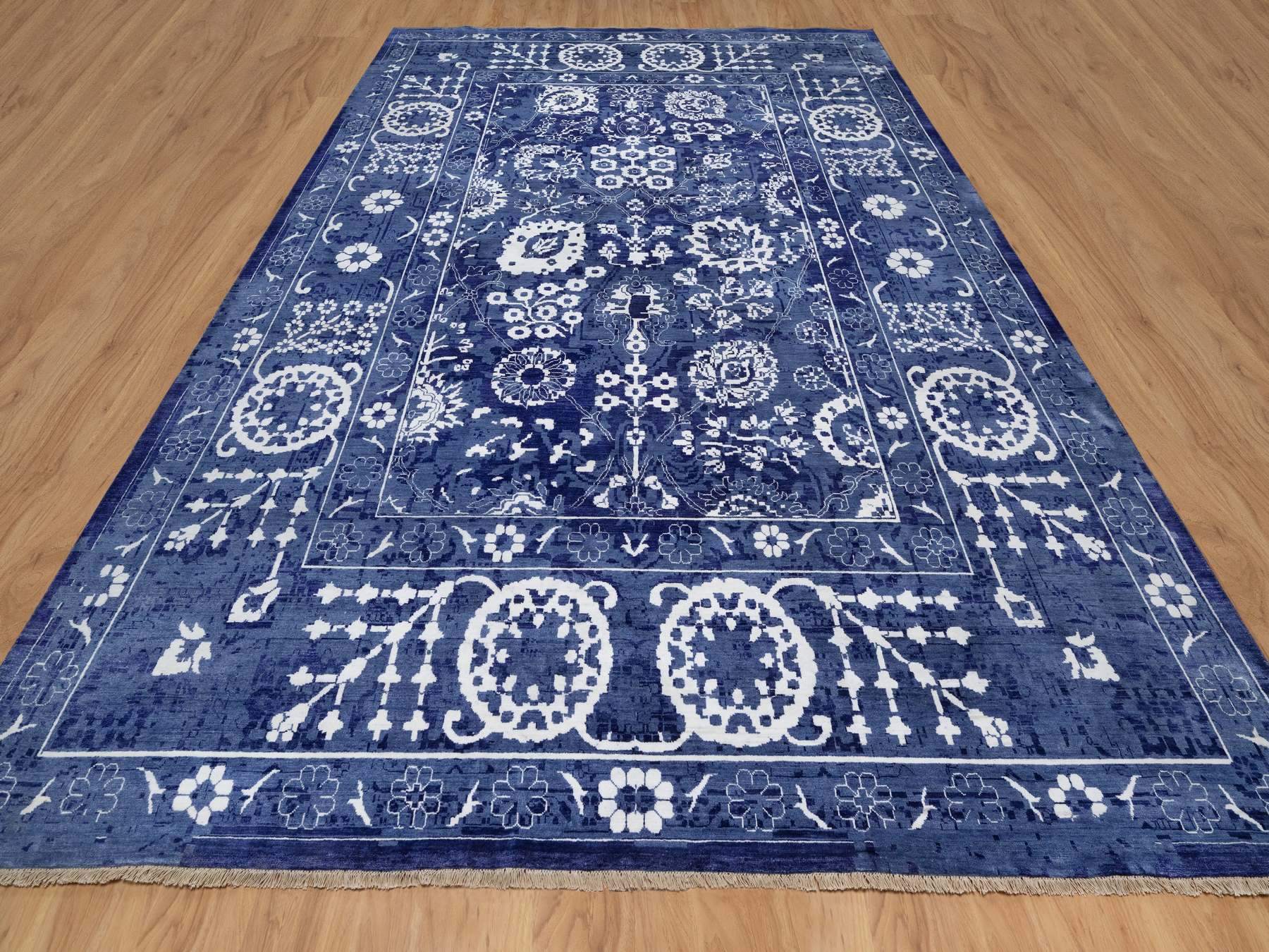 9'10" x 14'0" New Hand Knotted Blue Wool & Silk Rectangle Oriental Rug - MOA10291227