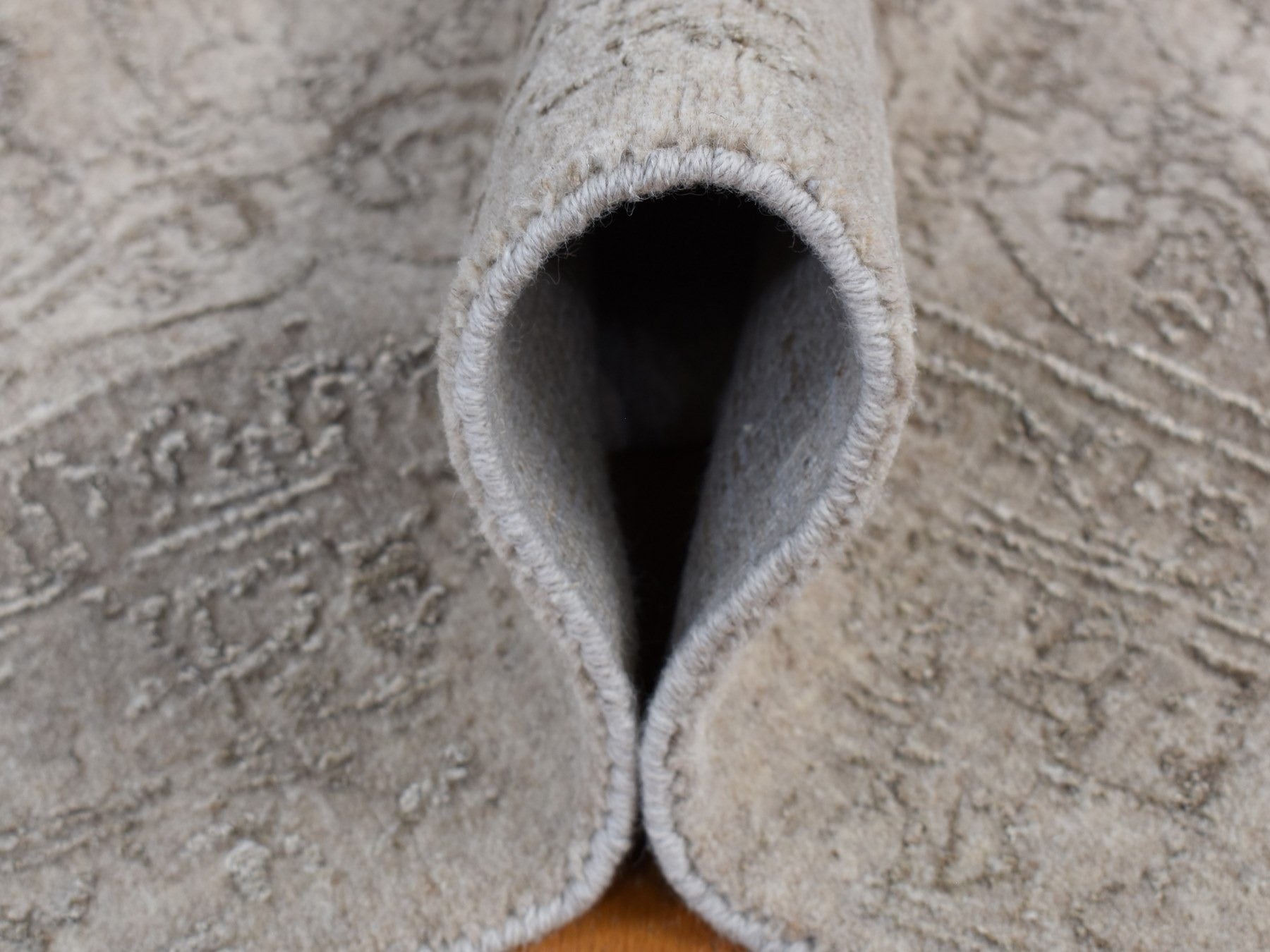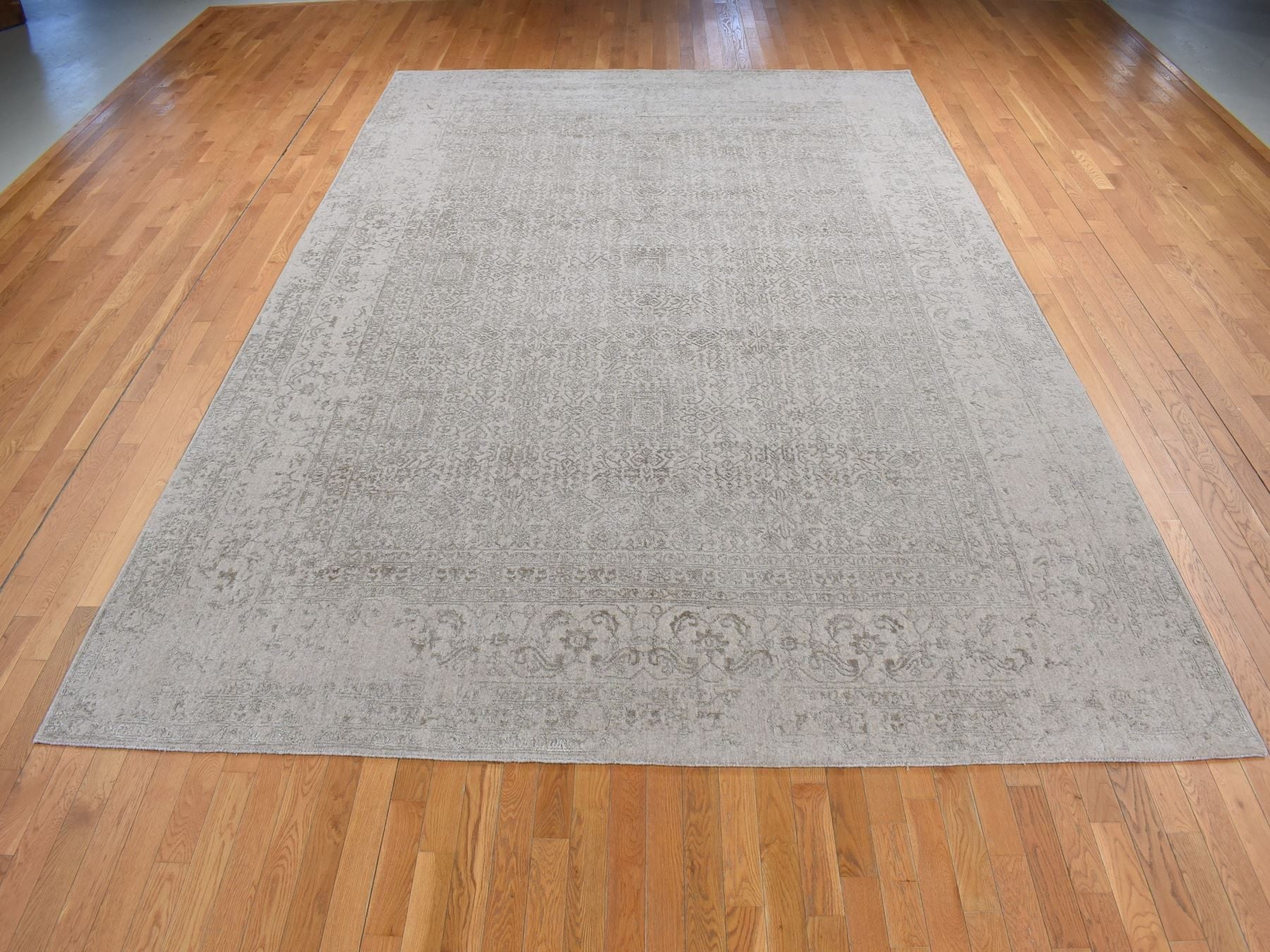 9'10" x 14'1" New Hand Loomed Beige Wool & Silk Rectangle Oriental Rug - MOA10280849
