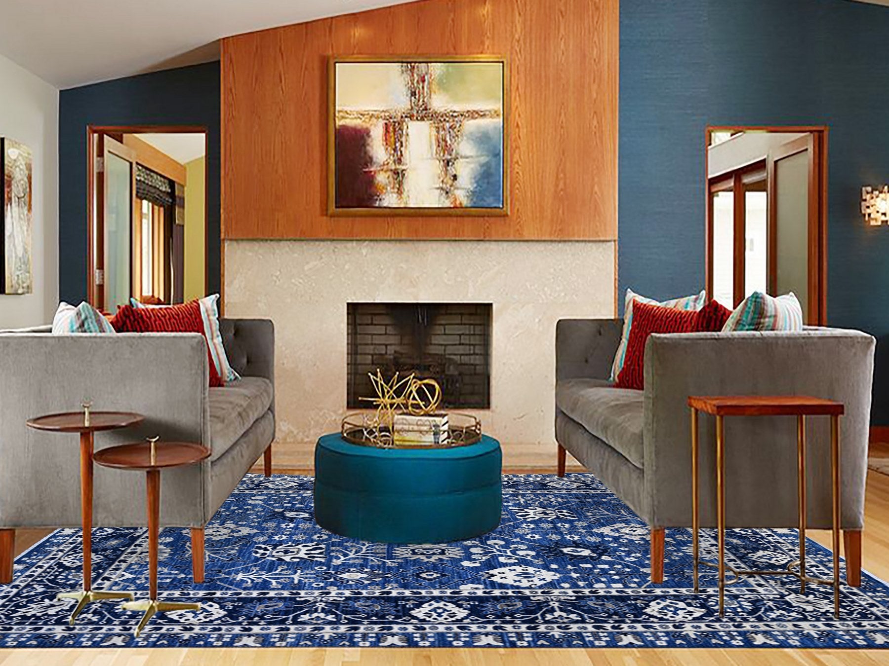 9'2" x 11'6" New Hand Knotted Blue Wool Rectangle Oriental Rug - MOA10289664