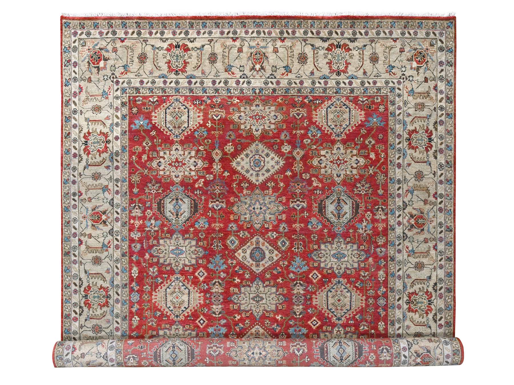 9'3" x 11'11" New Hand Knotted Red Wool Rectangle Oriental Rug - MOA10284532