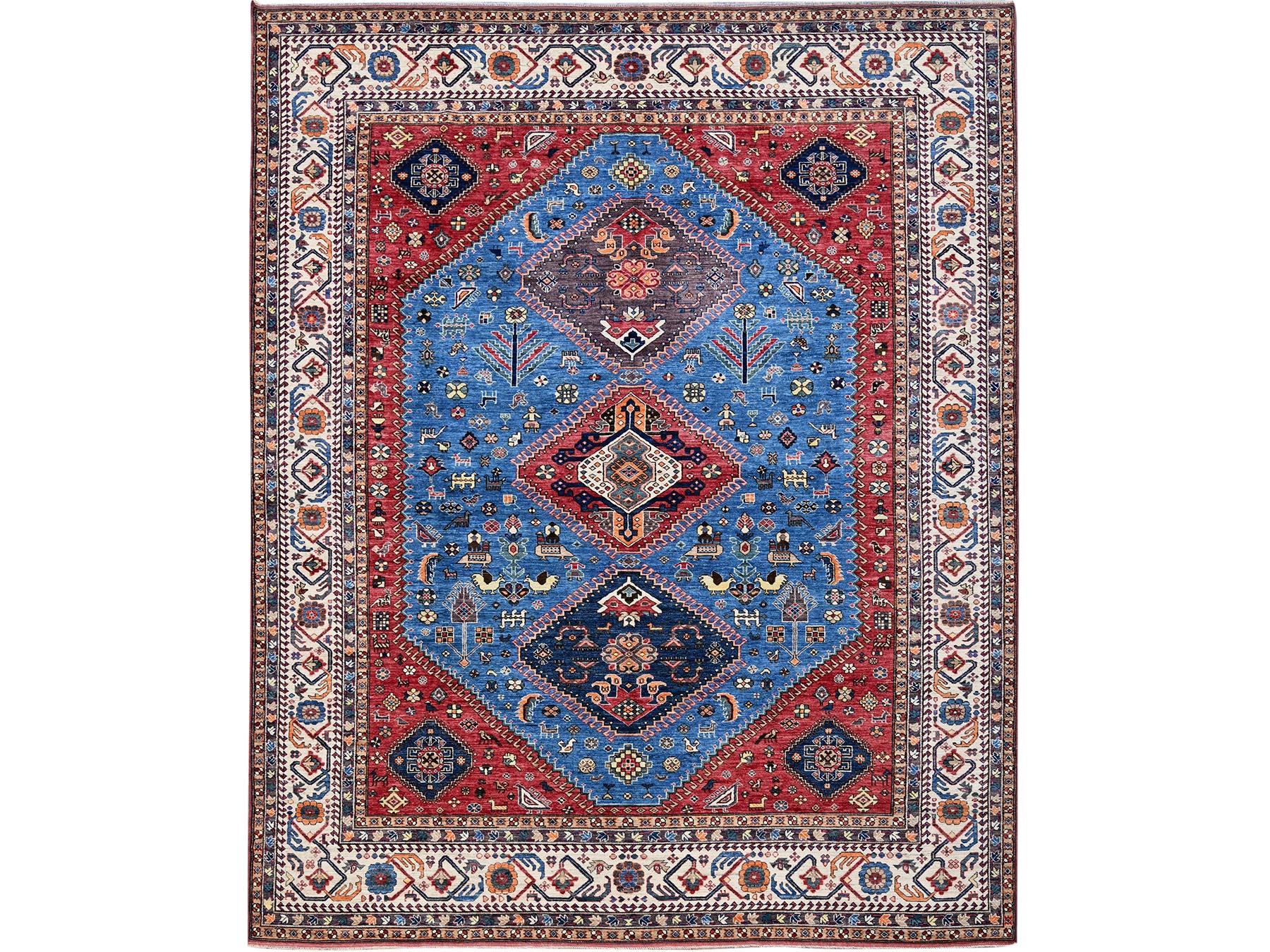 9'3" x 11'7" New Hand Knotted Blue Wool Rectangle Oriental Rug - MOA102568