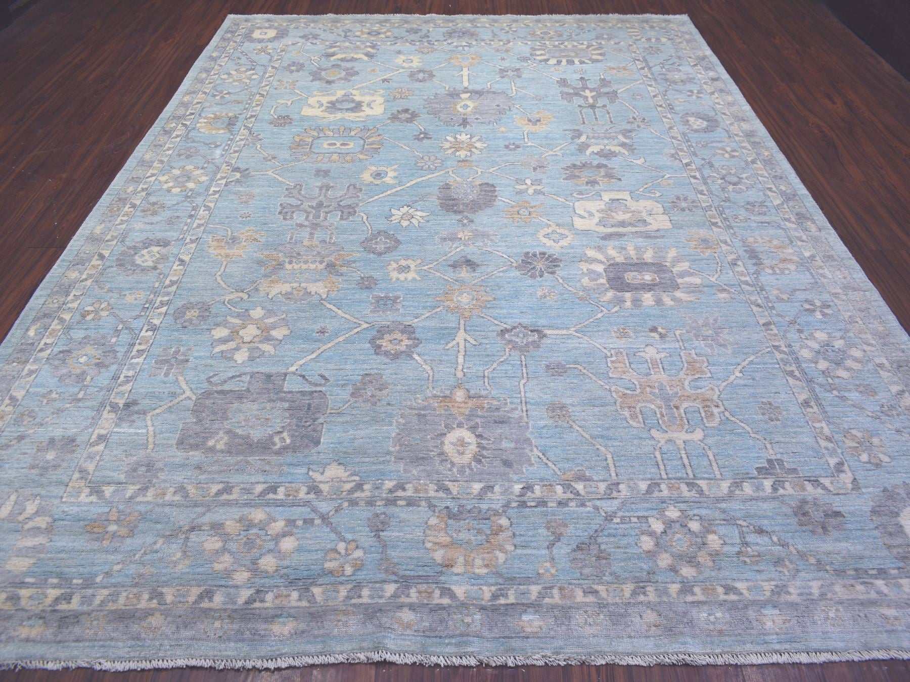 9'3" x 12'0" New Hand Knotted Blue Wool Rectangle Oriental Rug - MOA10272140
