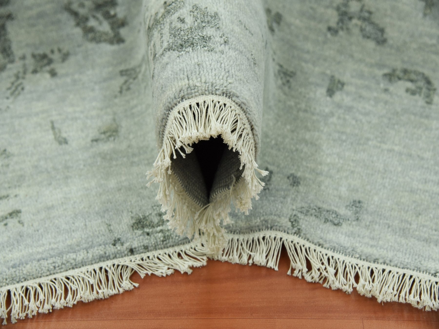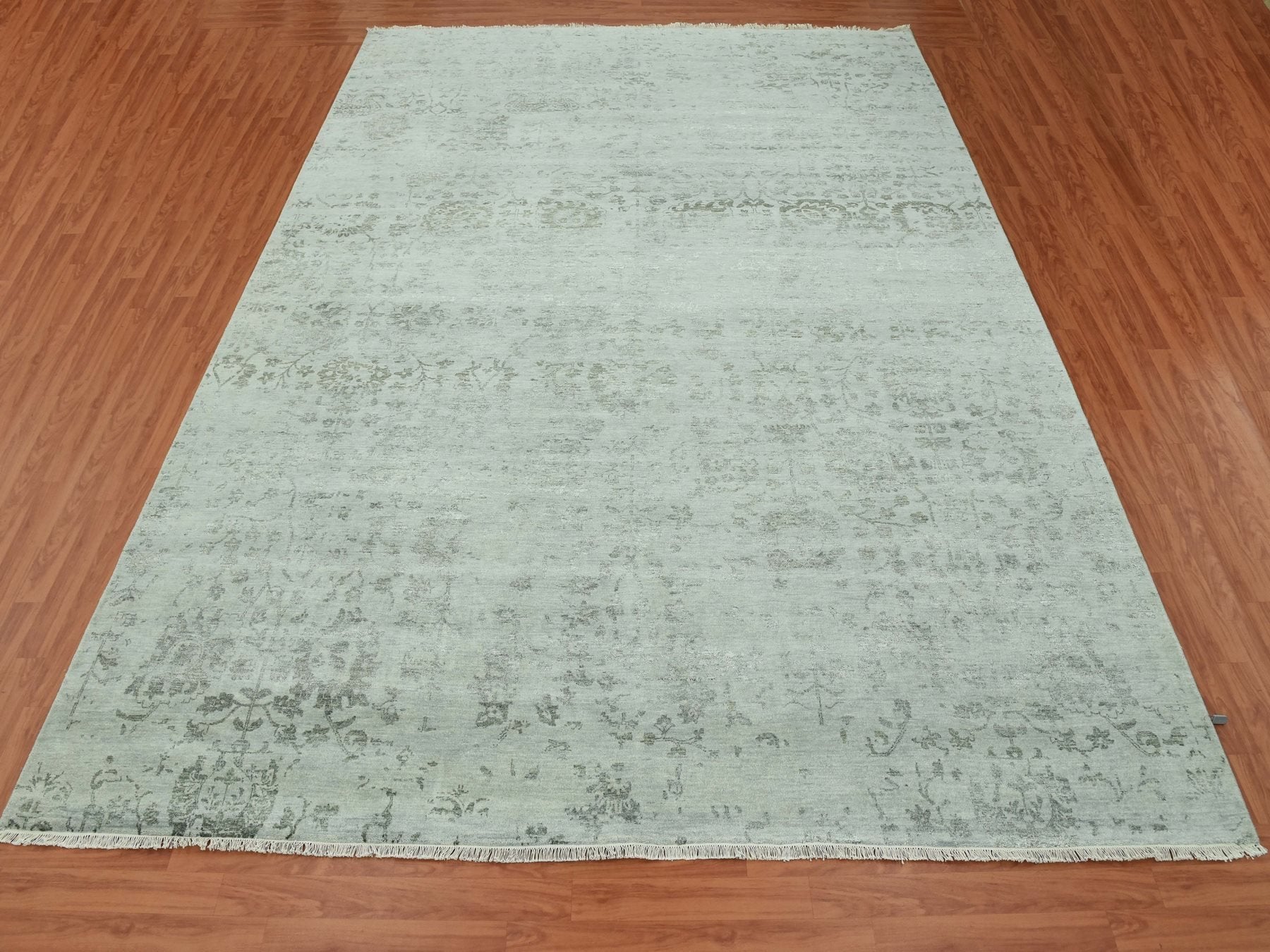 9'9" x 13'7" New Hand Knotted Grey Wool & Silk Rectangle Oriental Rug - MOA10279289