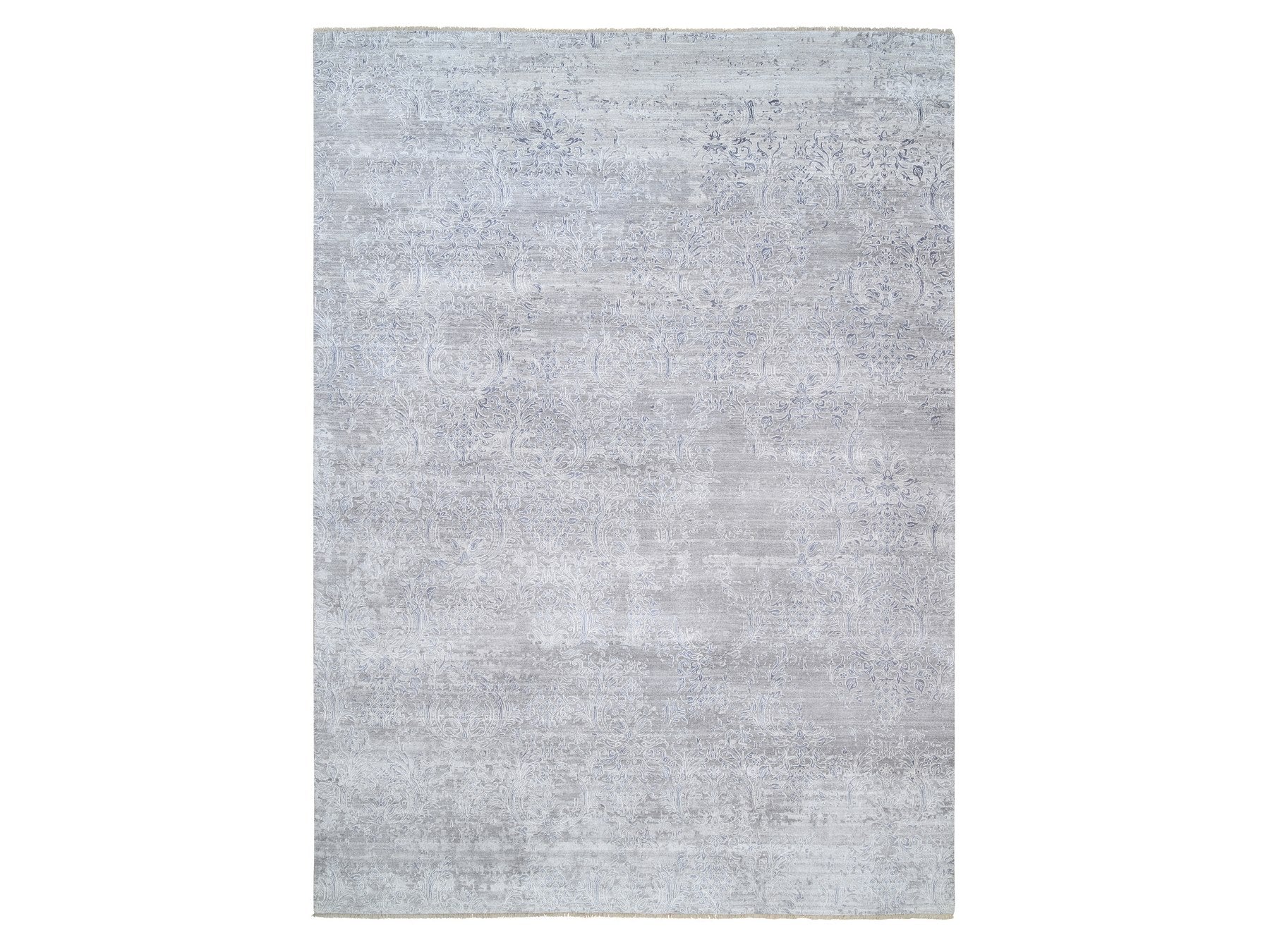 10'0" x 13'10" New Hand Knotted Grey Wool & Silk Rectangle Oriental Rug - MOA10264085