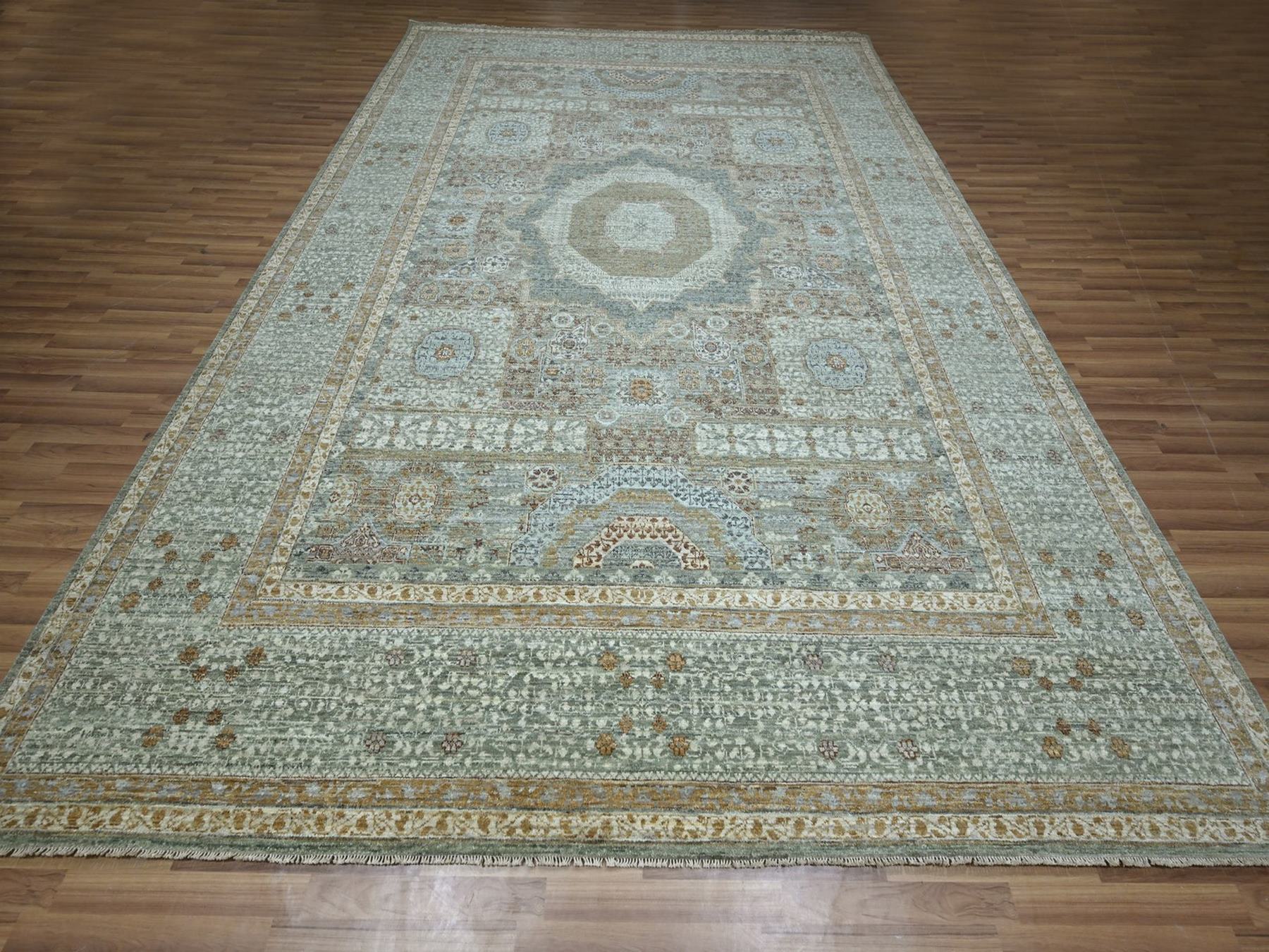 10'0" x 14'0" New Hand Knotted Green Wool Rectangle Oriental Rug - MOA10276848