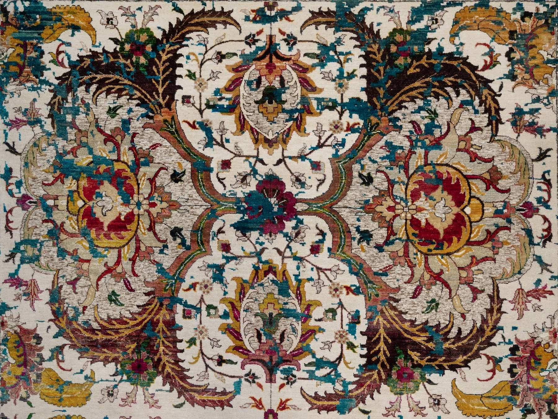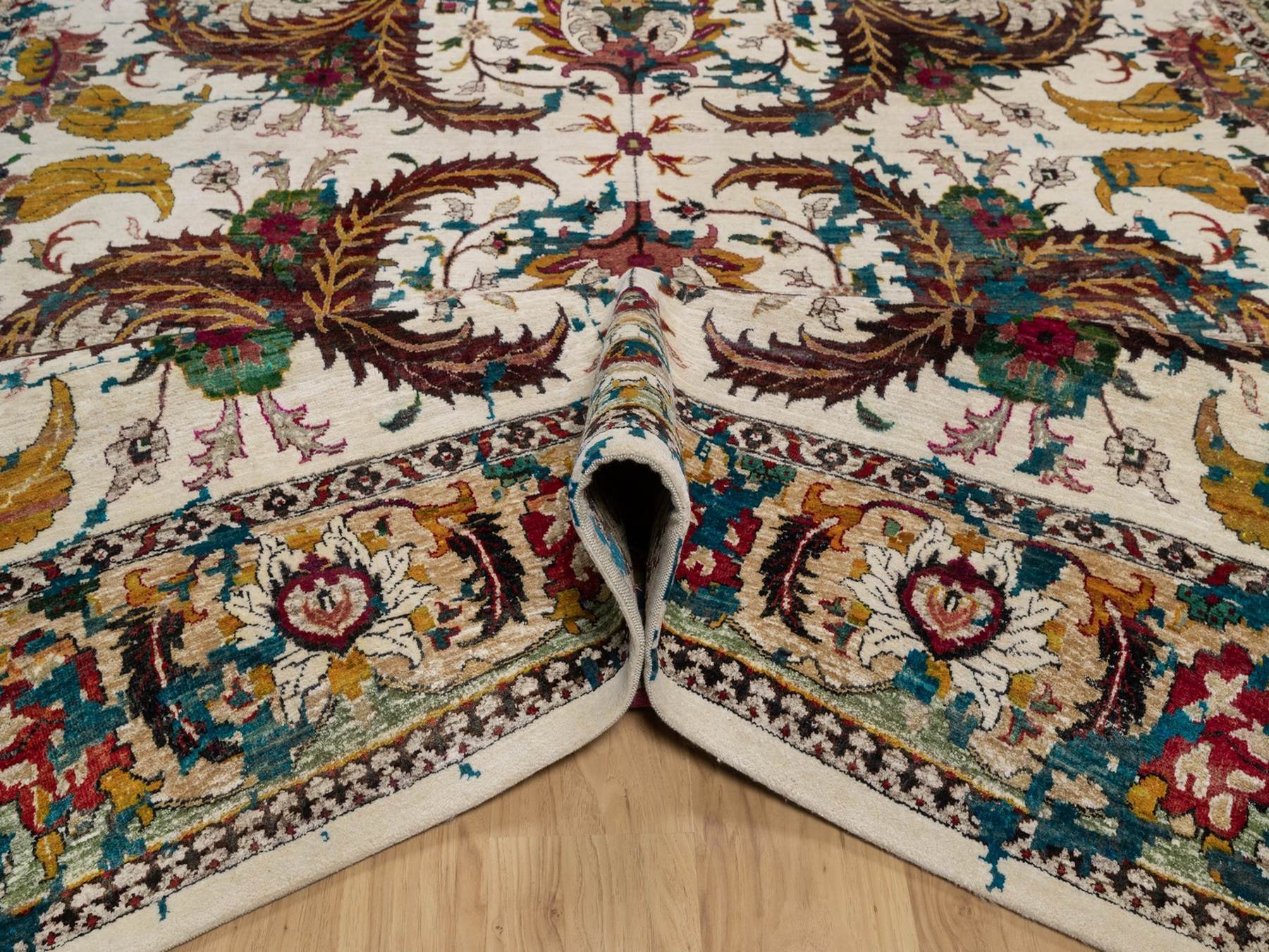 10'0" x 14'0" New Hand Knotted Ivory Wool & Silk Rectangle Oriental Rug - MOA10292083