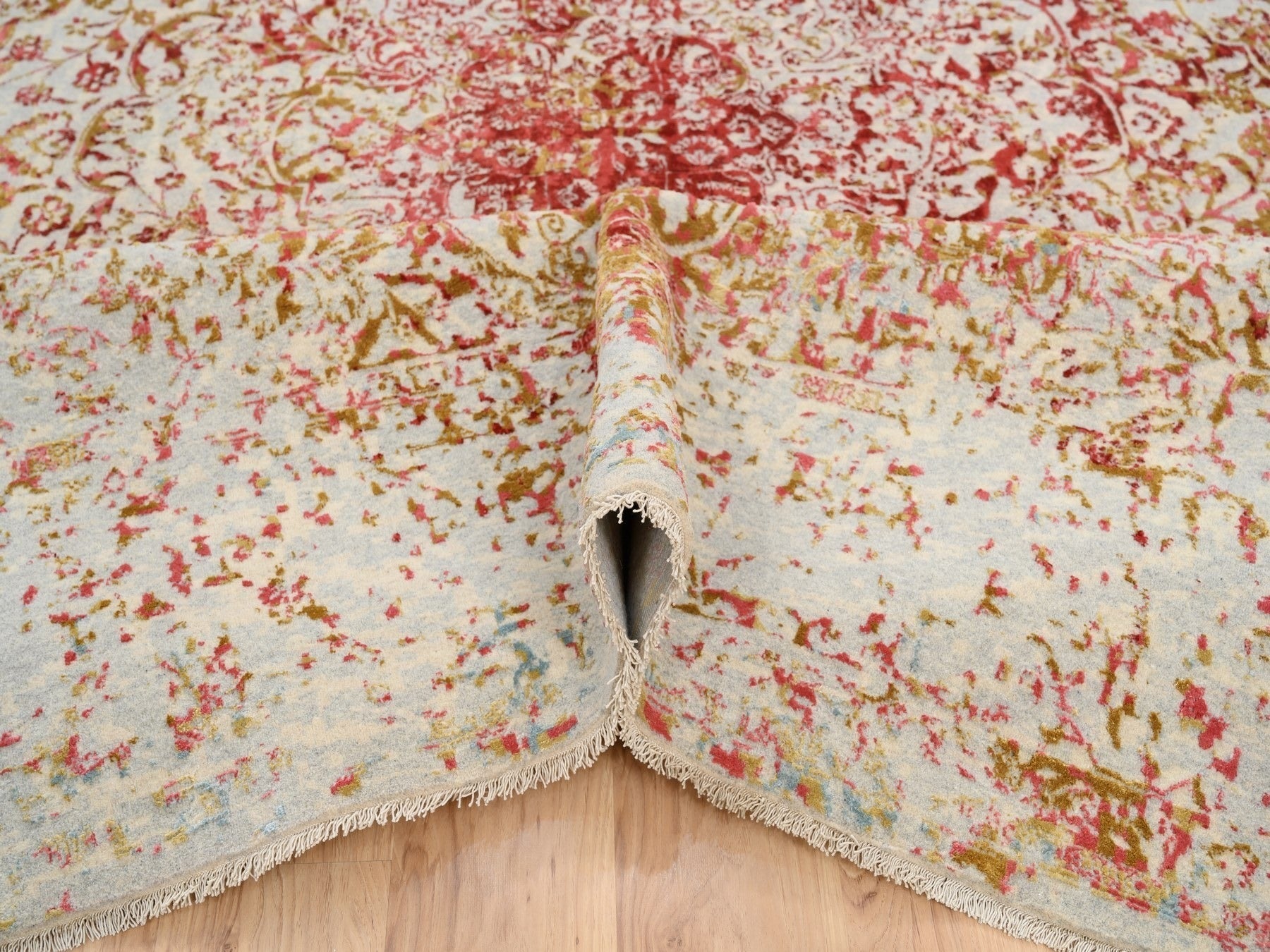 10'0" x 14'0" New Hand Knotted Pink Wool & Silk Rectangle Oriental Rug - MOA10263271