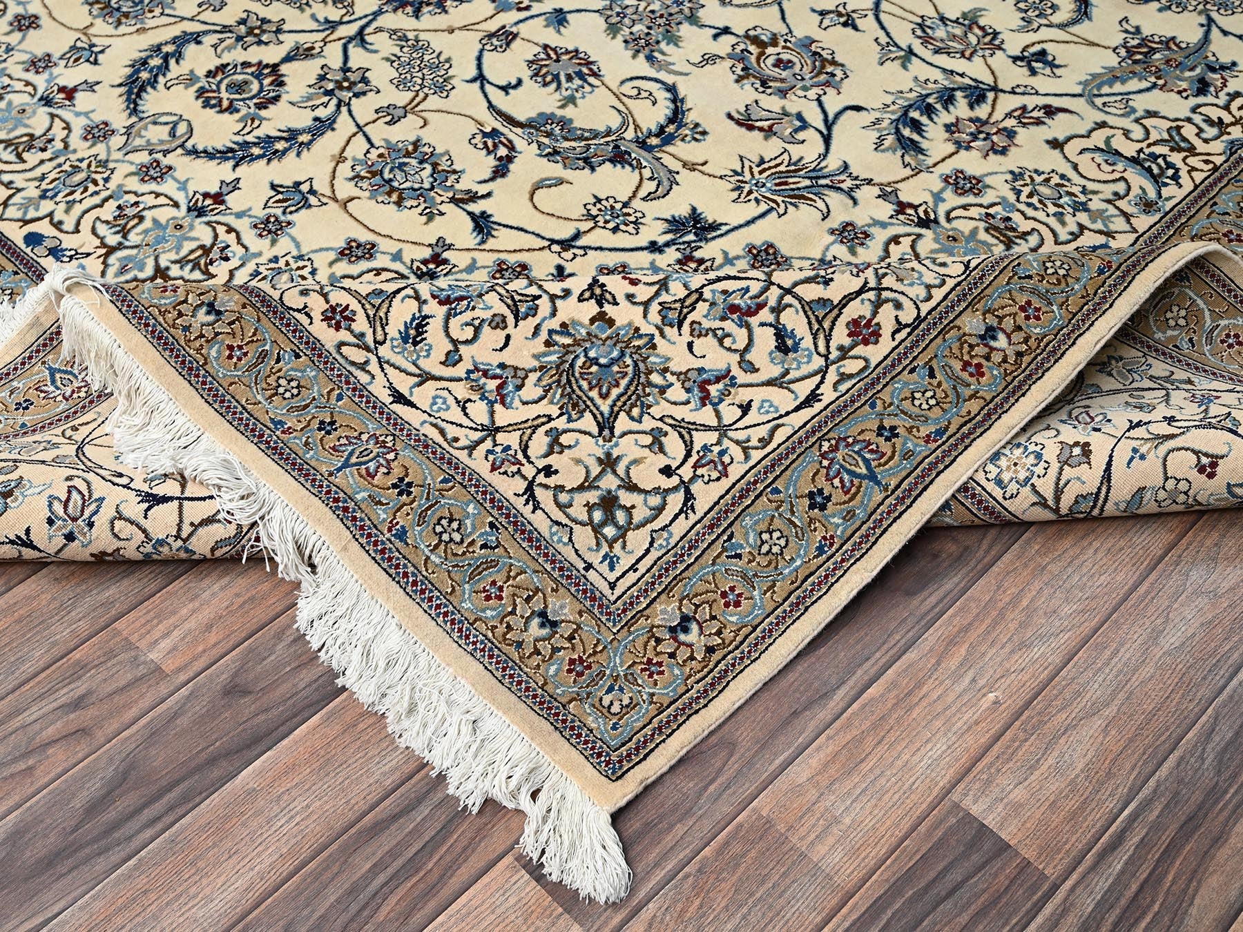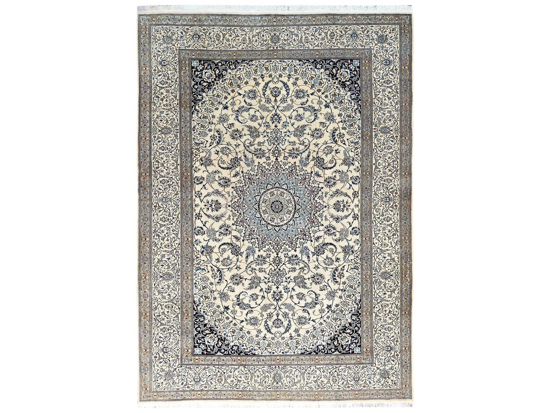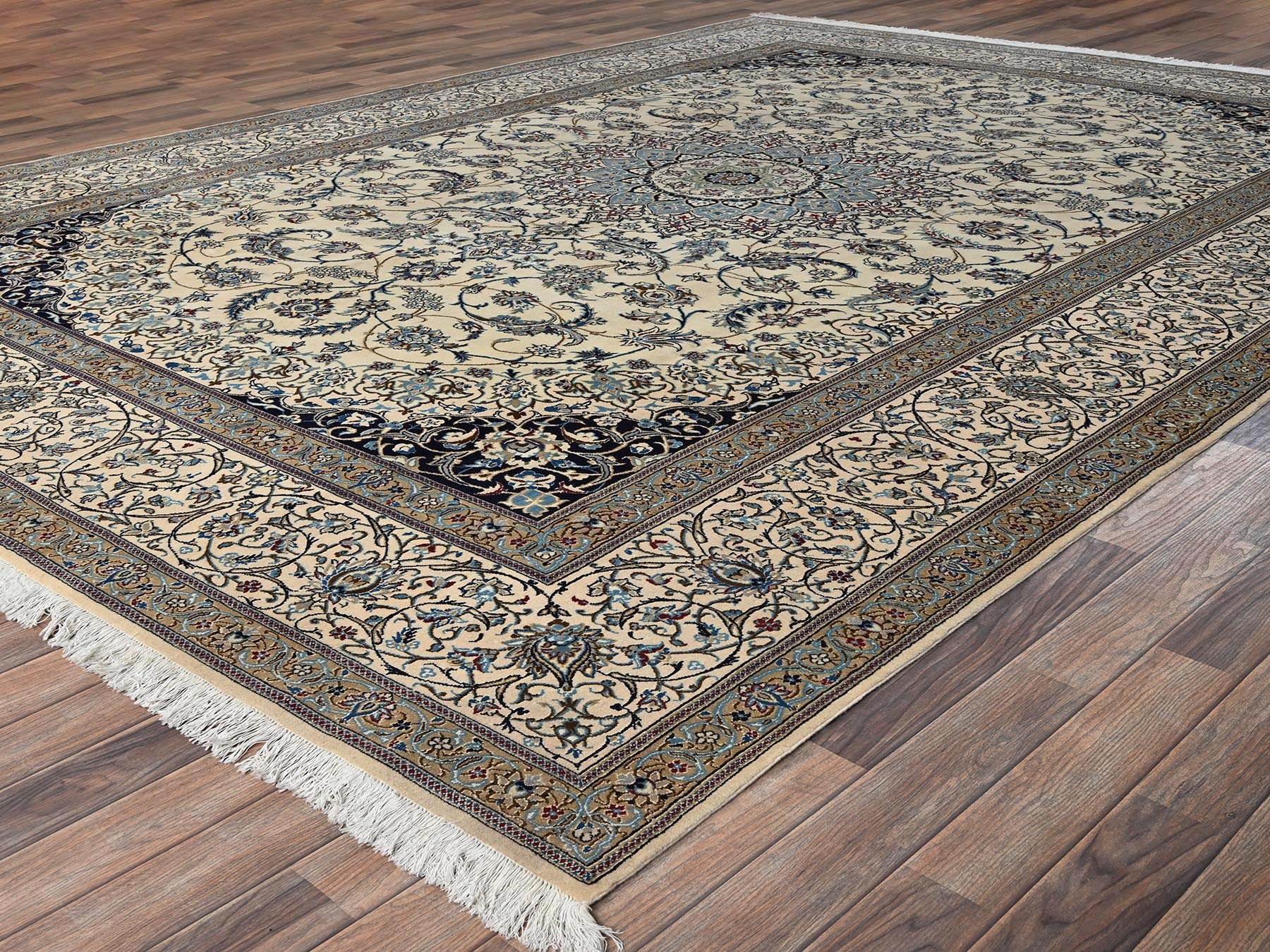 9'6" x 13'4" New Hand Knotted Ivory Wool & Silk Rectangle Oriental Rug - MOA1021461