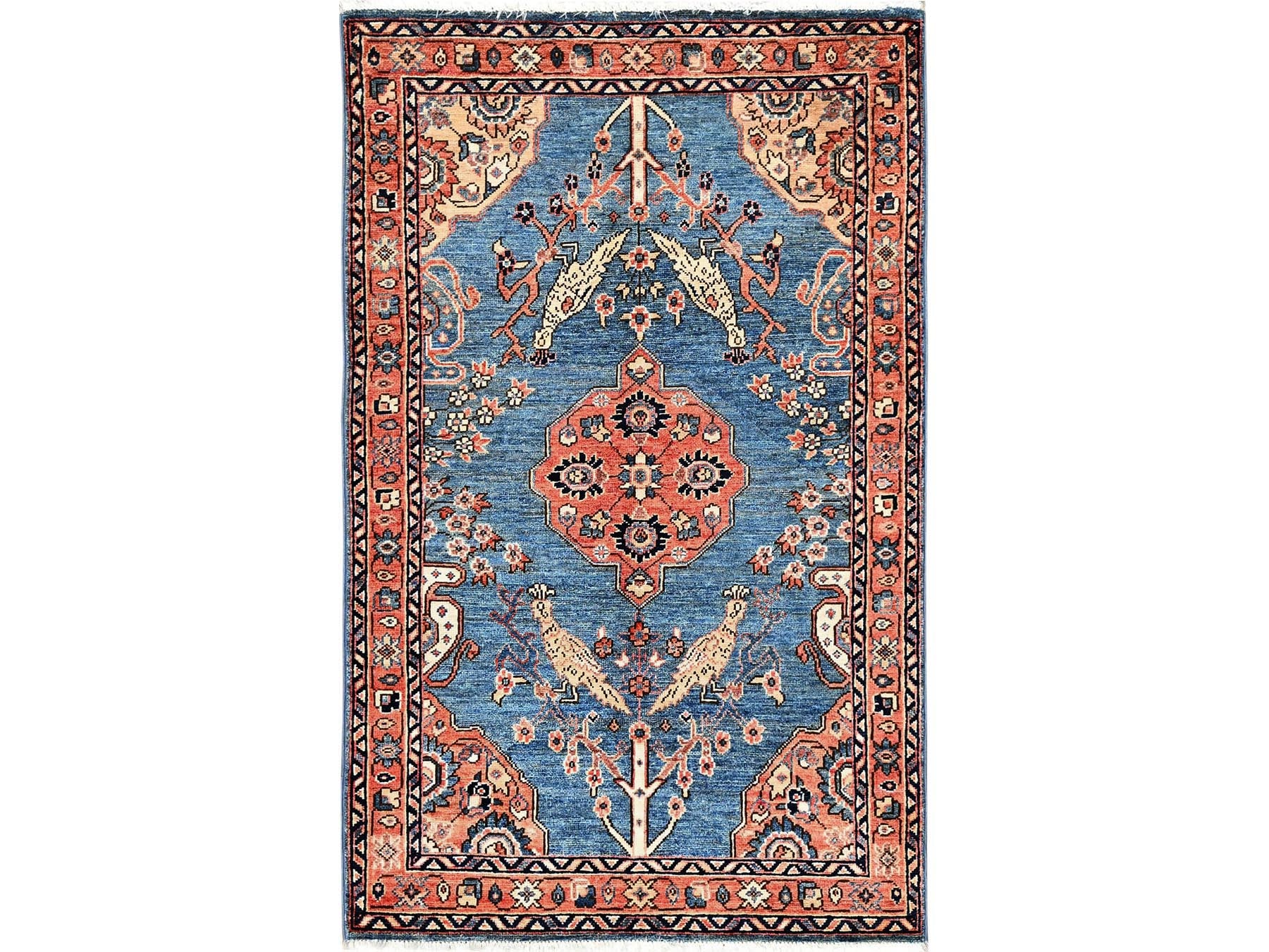 3'1" x 4'11" New Hand Knotted Blue Wool Rectangle Oriental Rug - MOA1021609