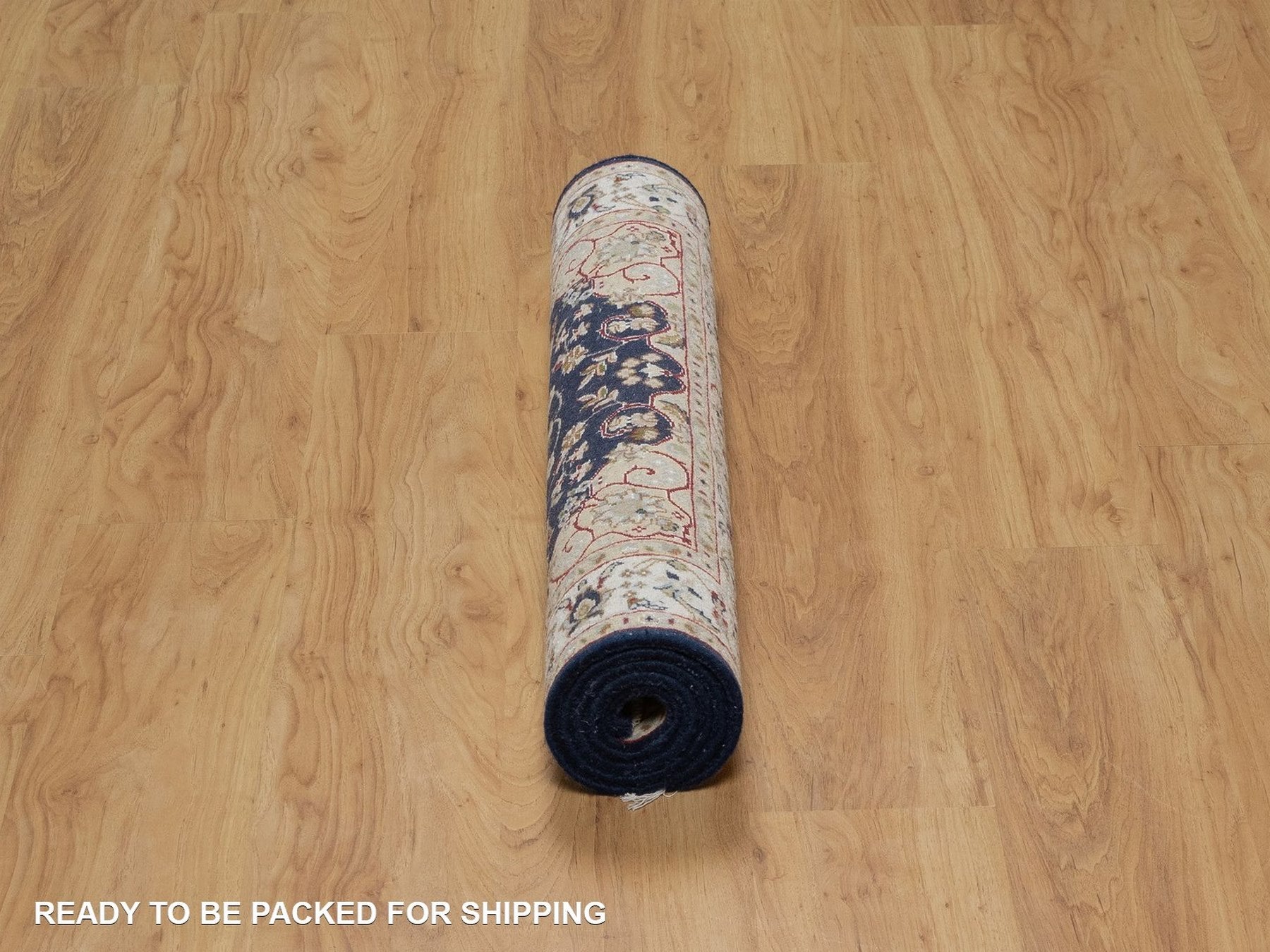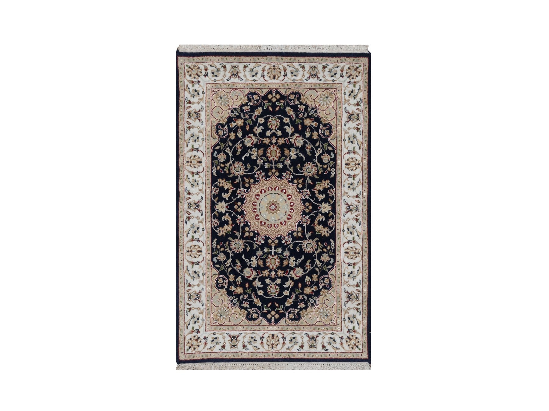 3'1" x 5'2" New Hand Knotted Blue Wool & Silk Rectangle Oriental Rug - MOA10291574