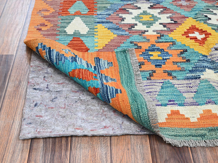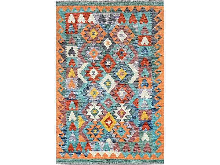 3'11" x 5'10" New Hand Woven Blue Wool Rectangle Oriental Rug - MOA1021194