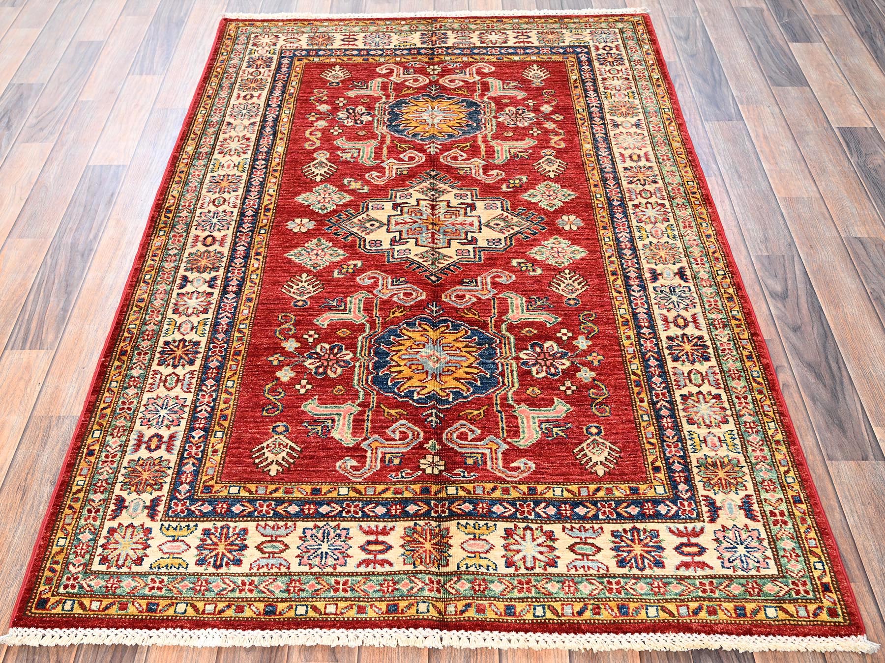 3'11" x 6'0" New Hand Knotted Red Wool Rectangle Oriental Rug - MOA1021829
