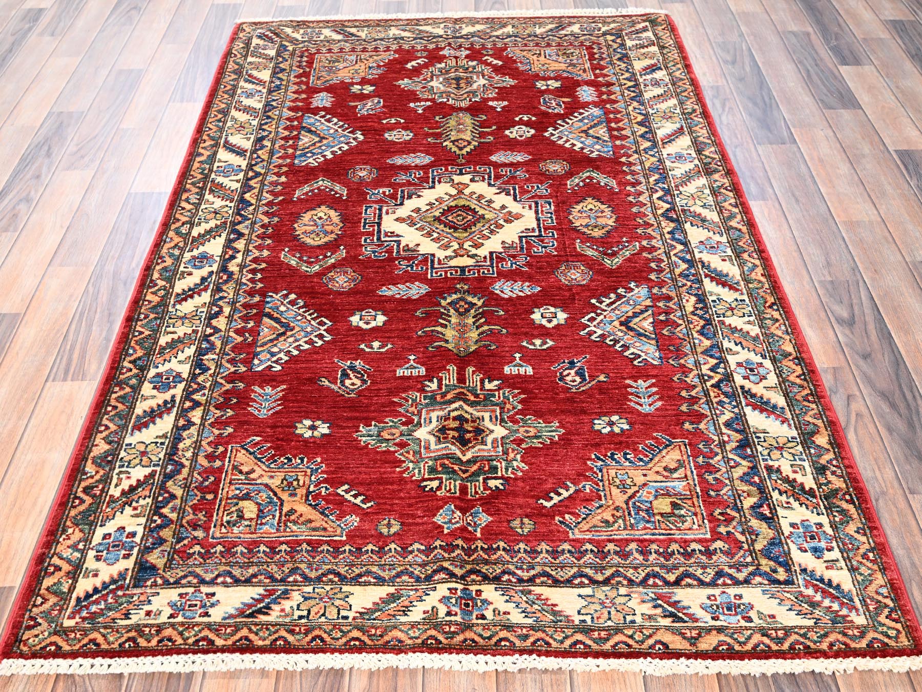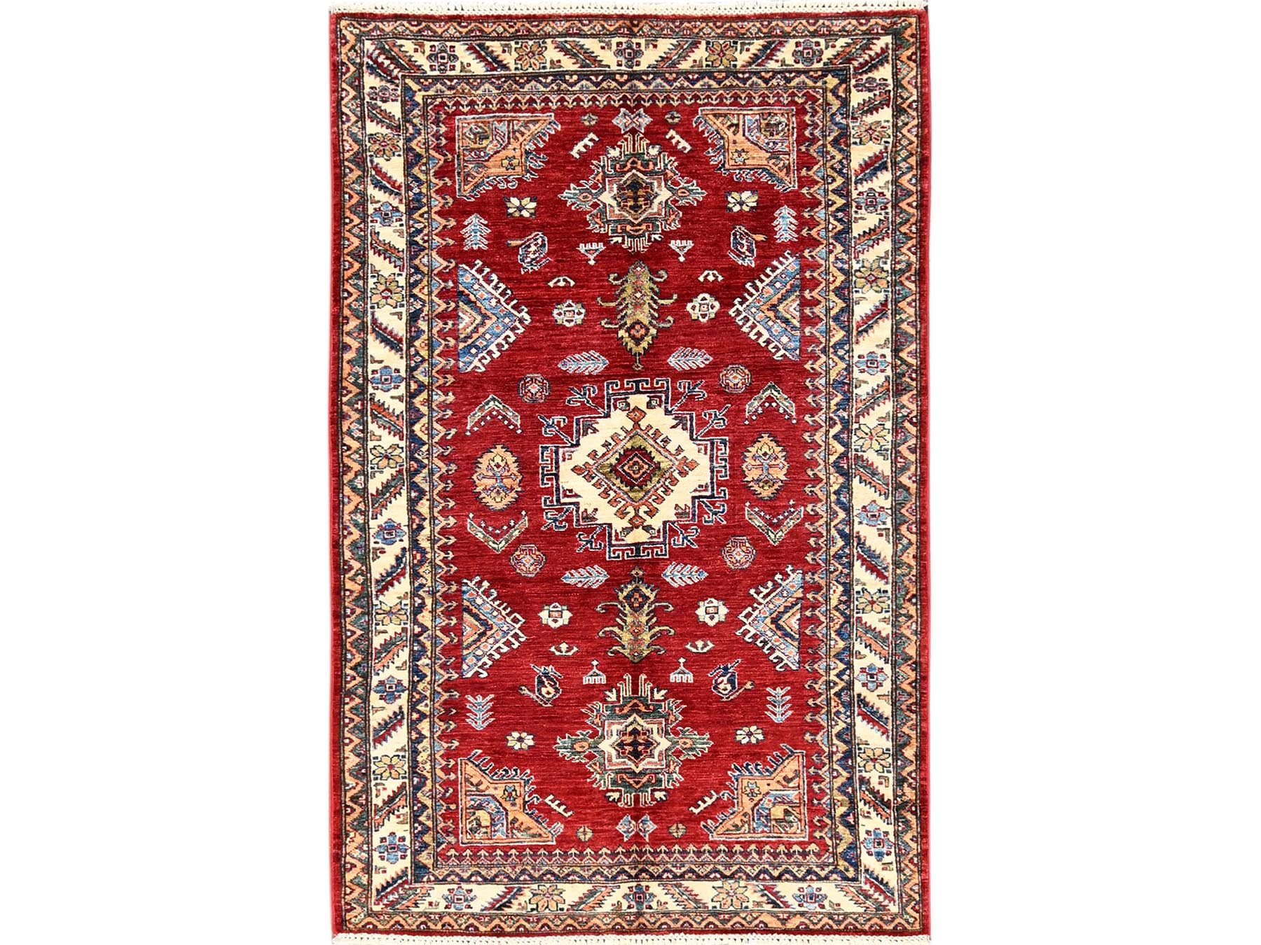 4'1" x 6'5" New Hand Knotted Red Wool Rectangle Oriental Rug - MOA1021828