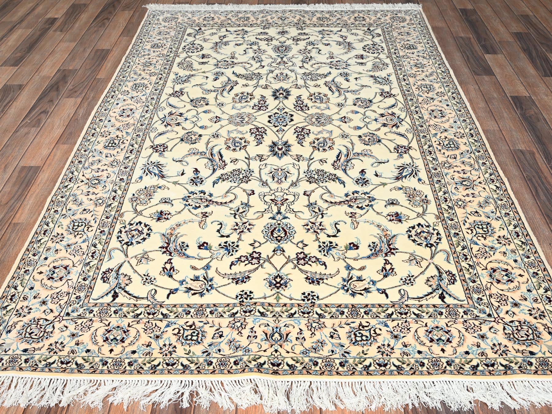 5'1" x 7'8" New Hand Knotted Ivory Wool & Silk Rectangle Oriental Rug - MOA1021464