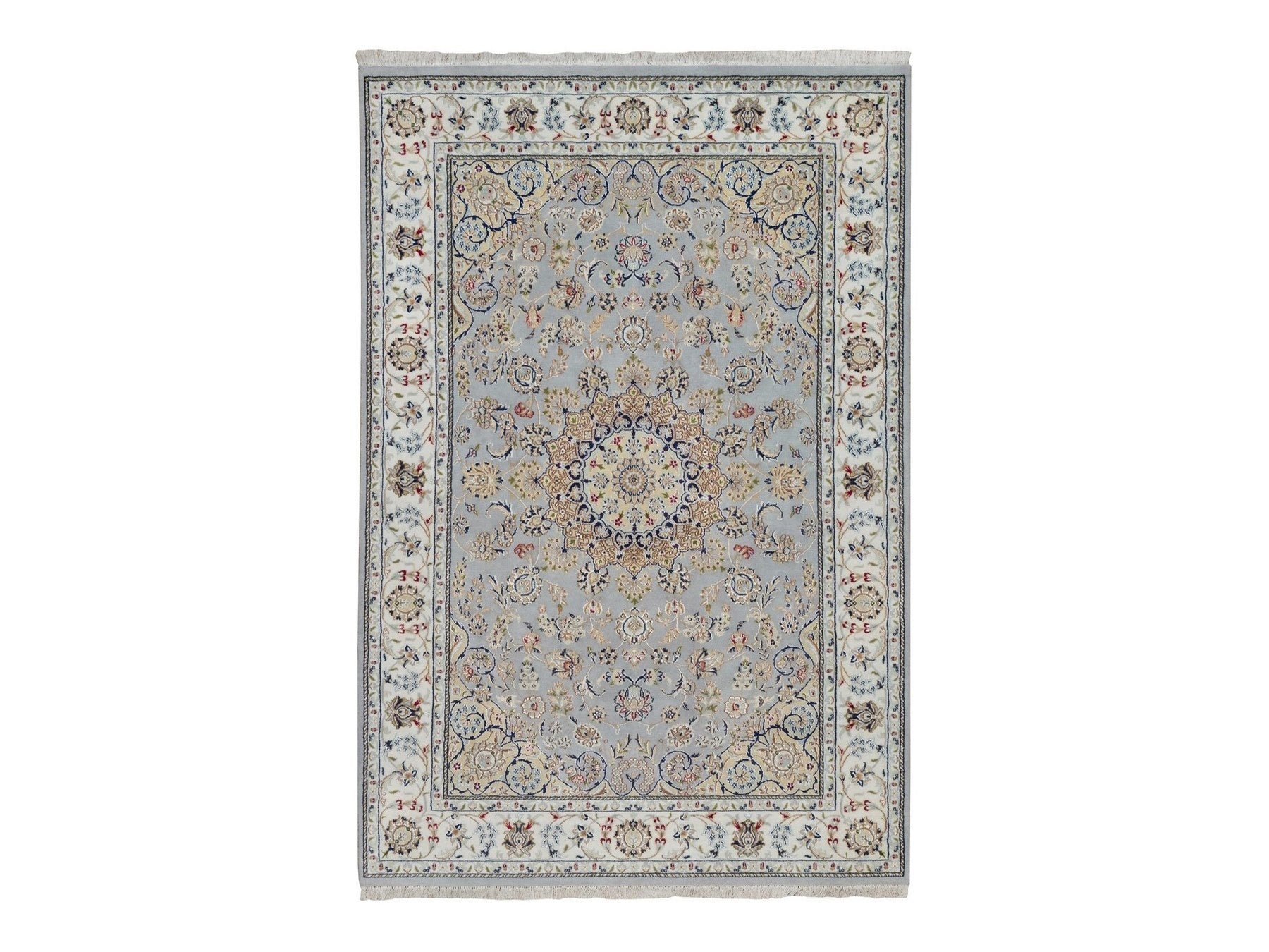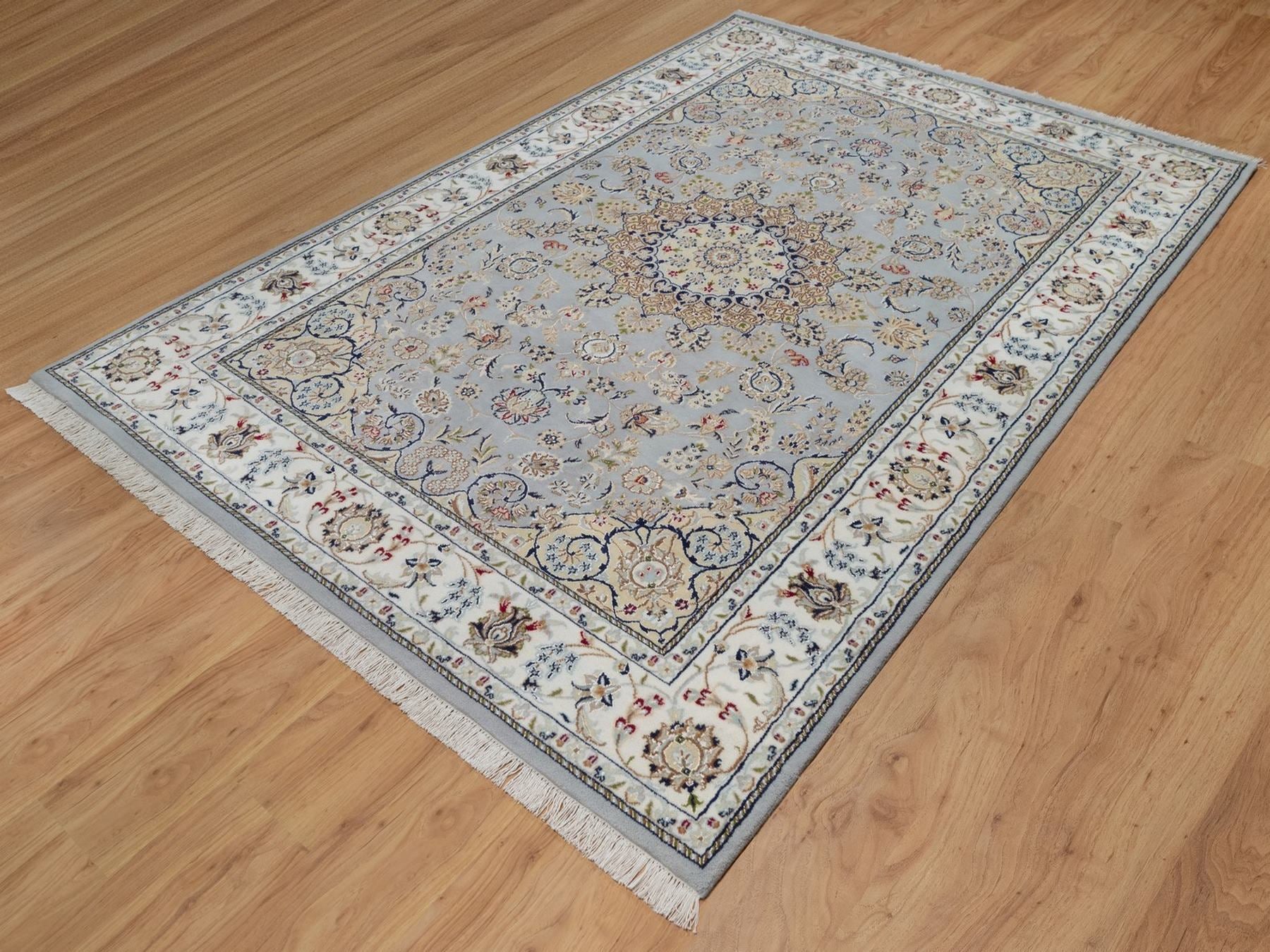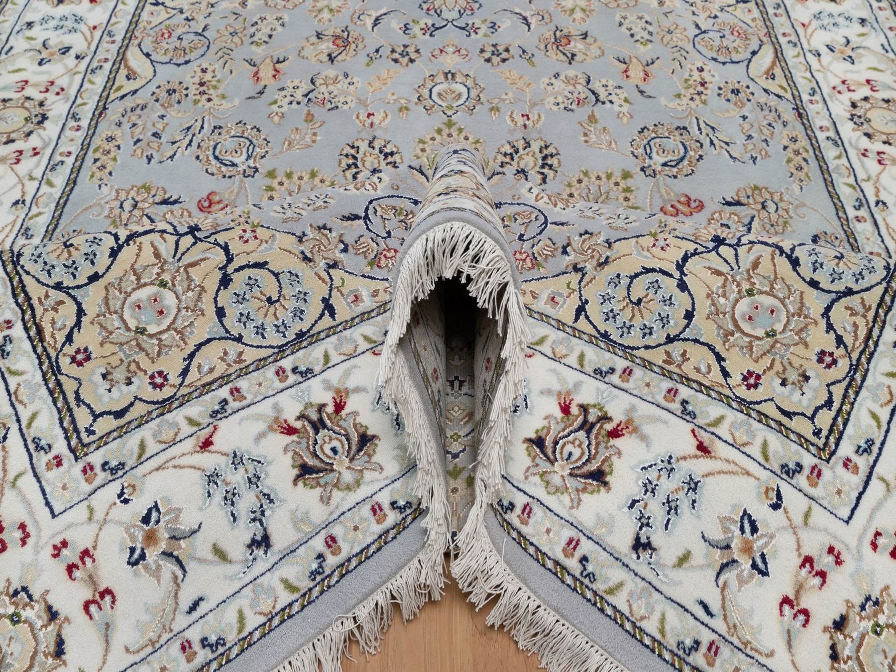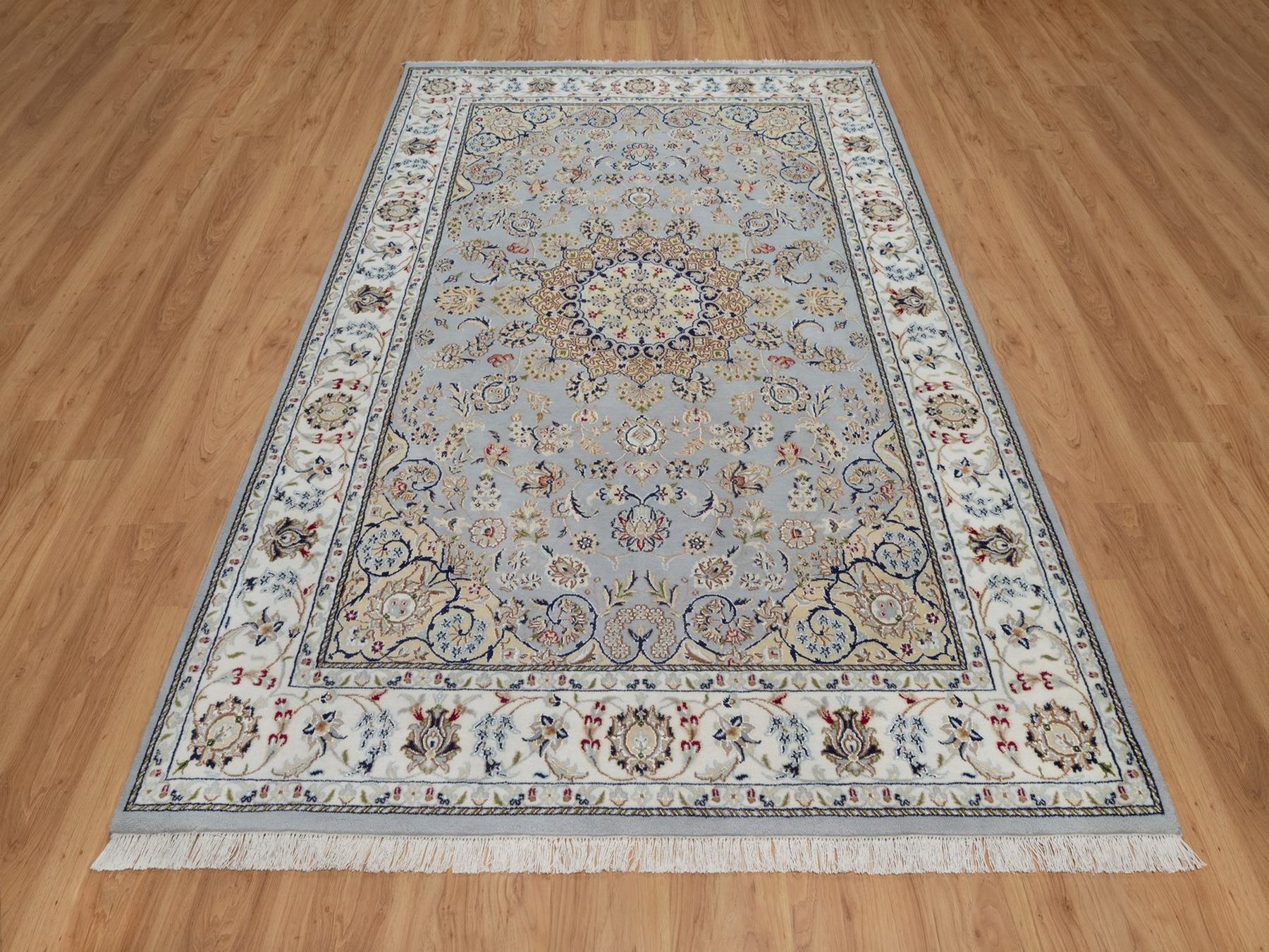 6'1" x 9'0" New Hand Knotted Blue Wool & Silk Rectangle Oriental Rug - MOA10292006