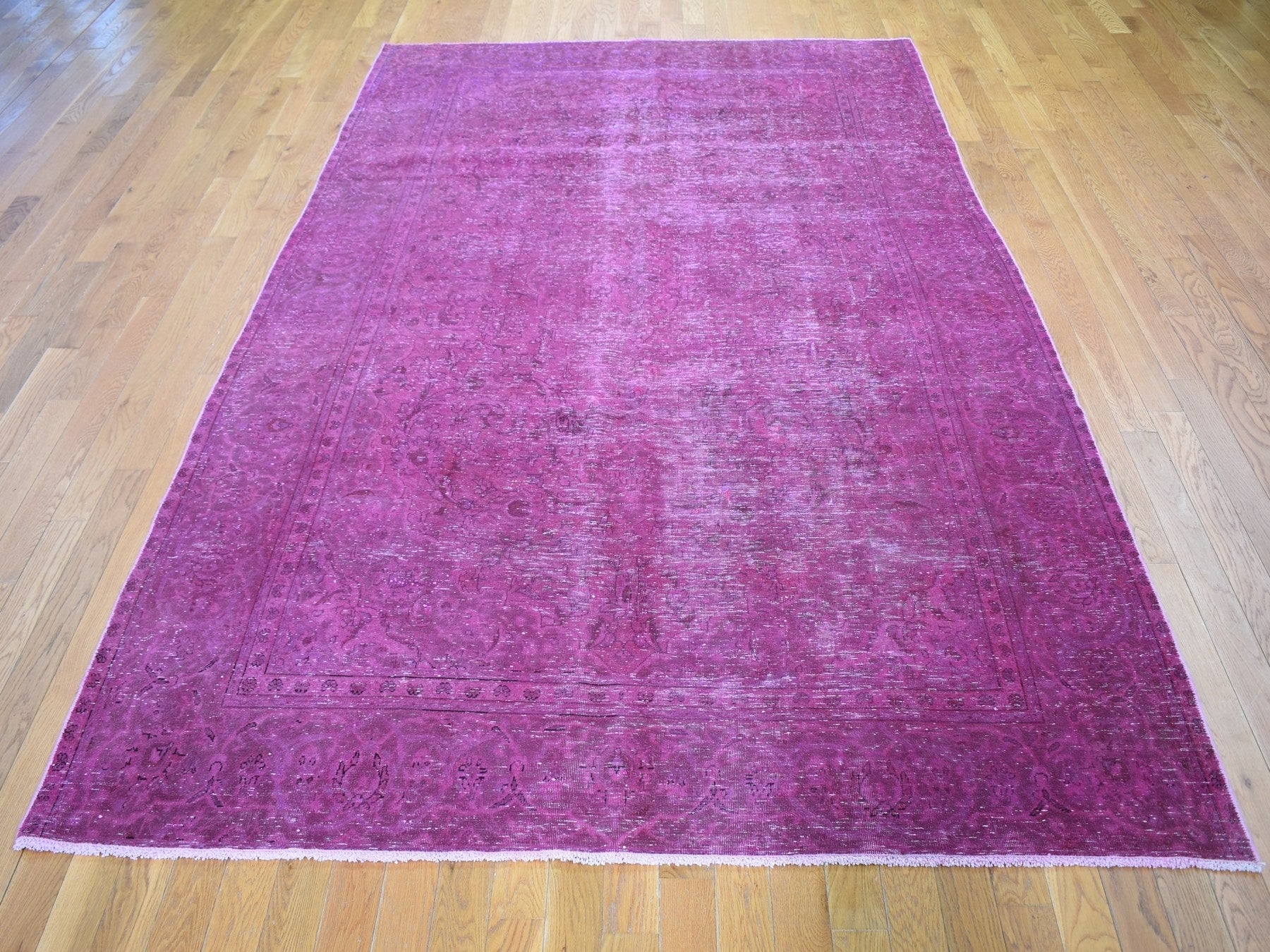 6'4" x 10'0" New Hand Knotted Overdyed Worn Wool Rectangle Oriental Rug - MOA10259208