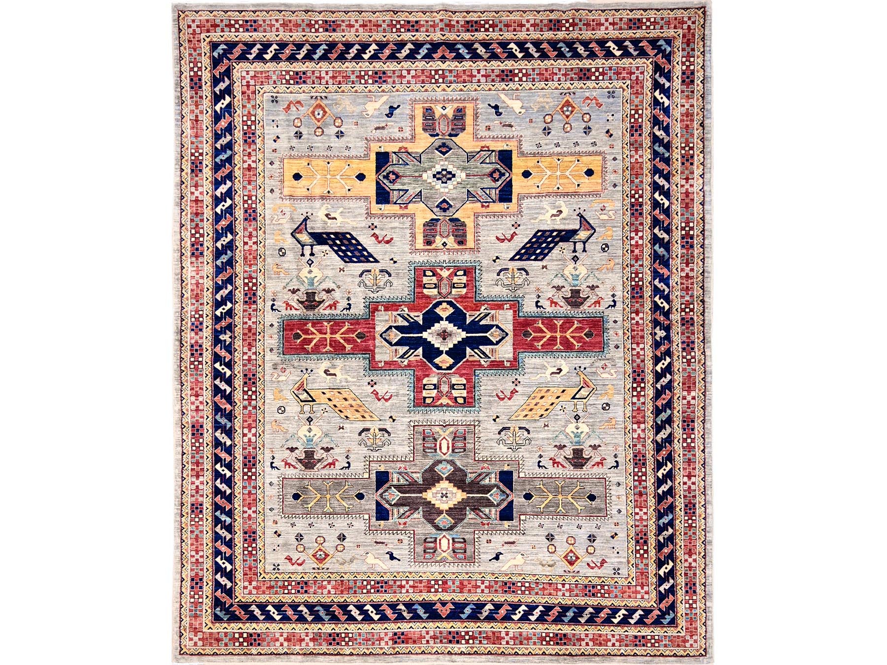 7'10" x 9'9" New Hand Knotted Grey Wool Rectangle Oriental Rug - MOA1022082