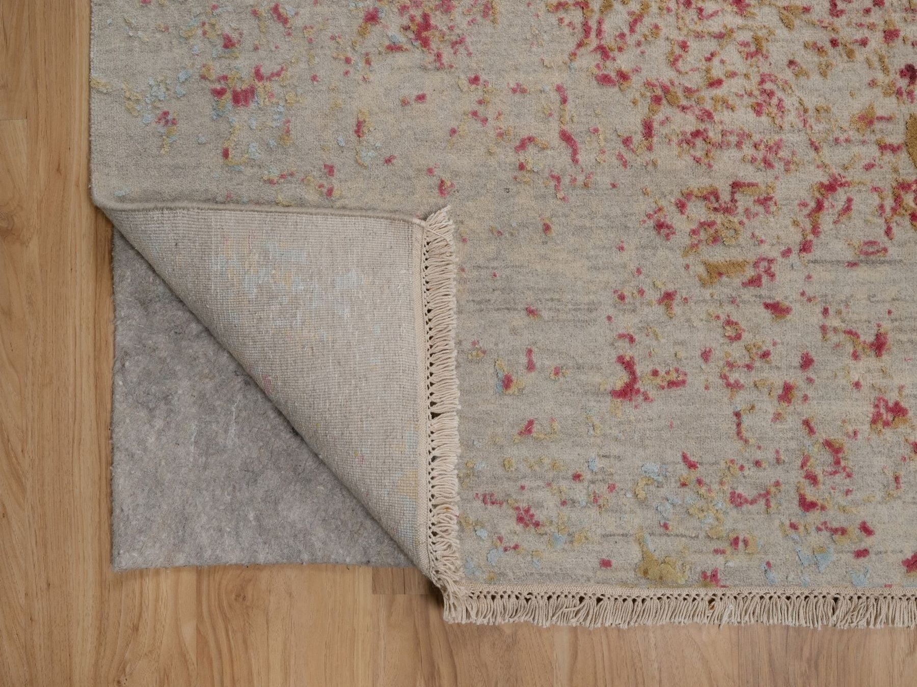 7'11" x 9'10" New Hand Knotted Pink Wool & Silk Rectangle Oriental Rug - MOA10292390