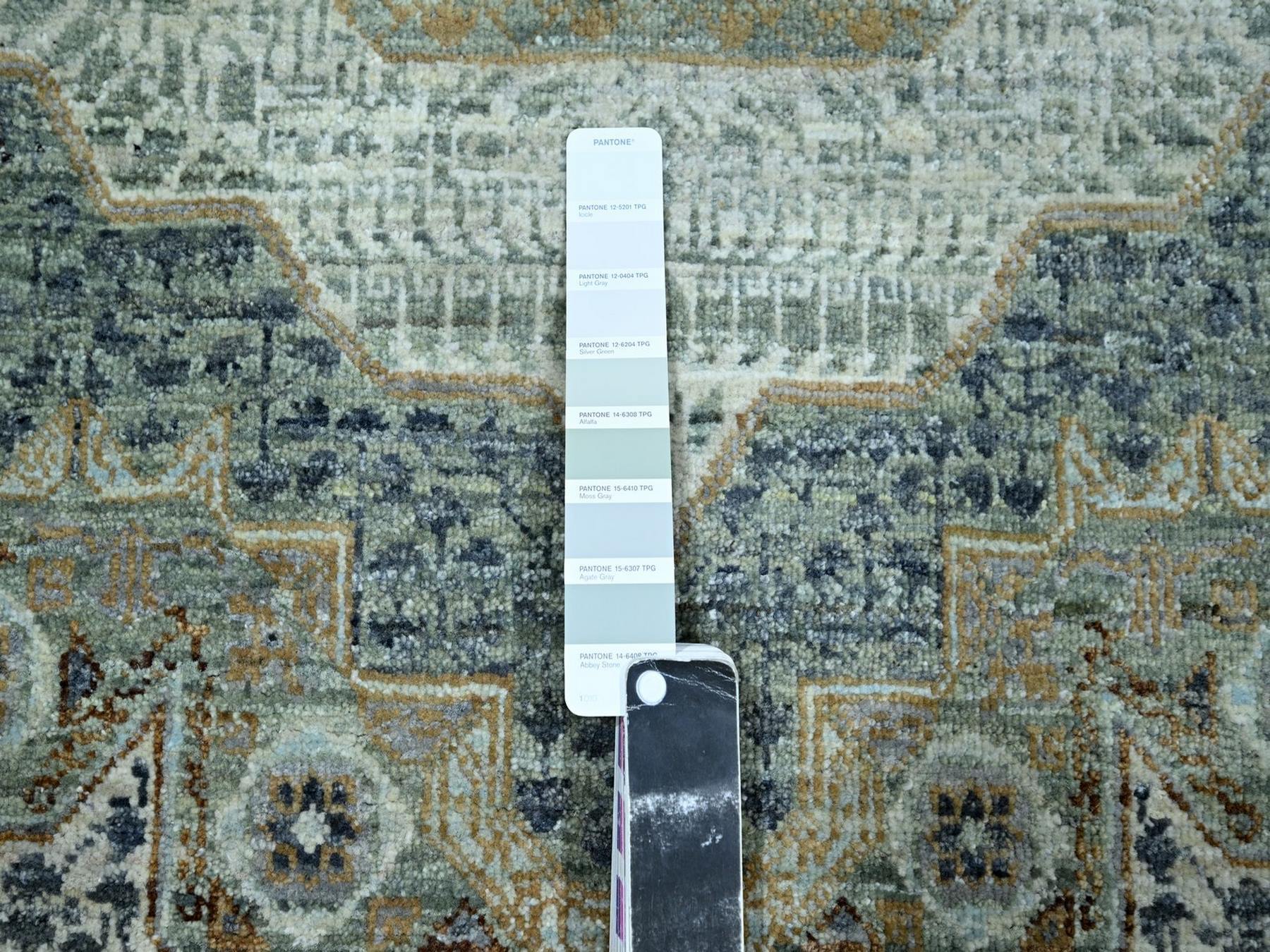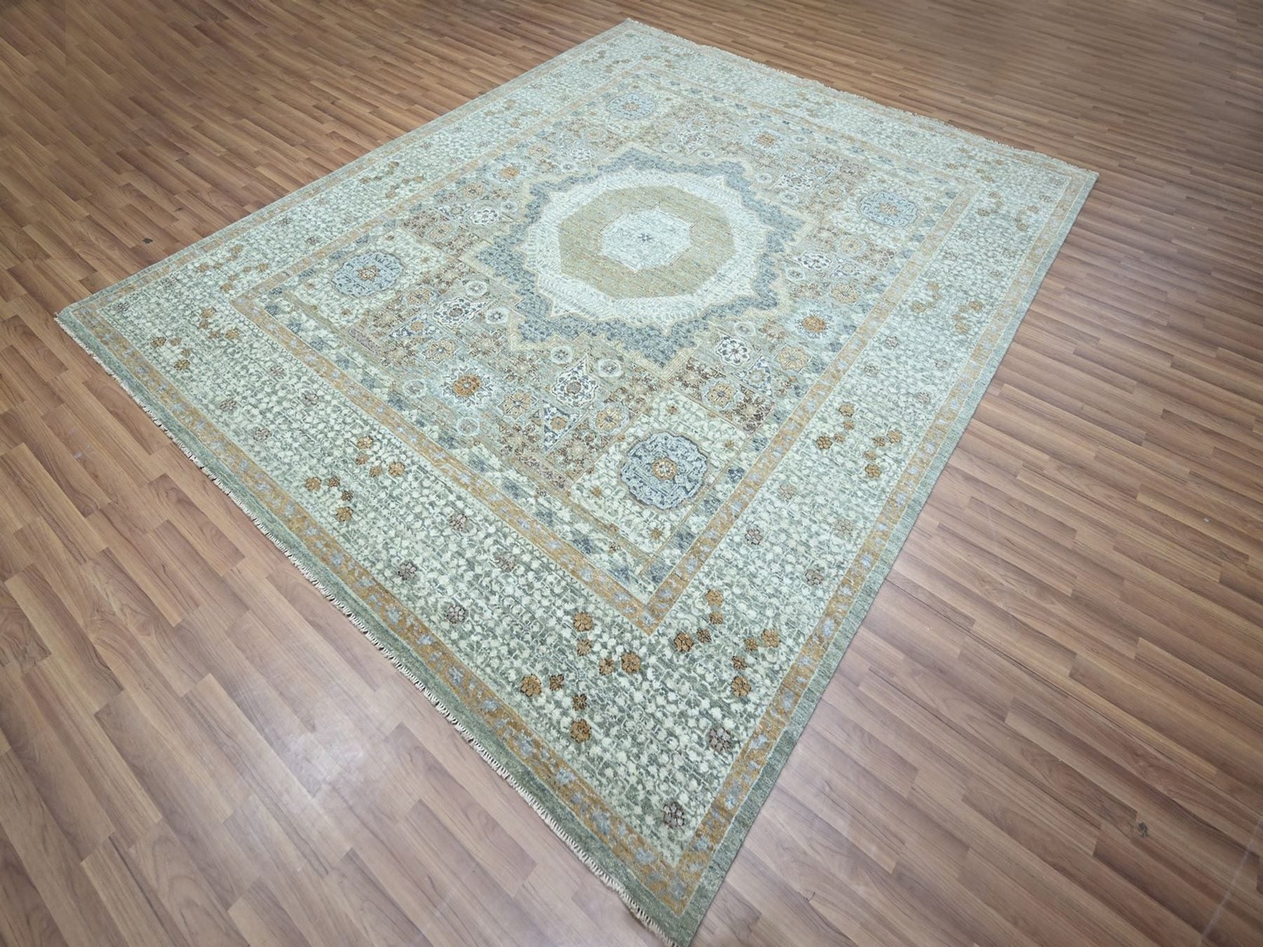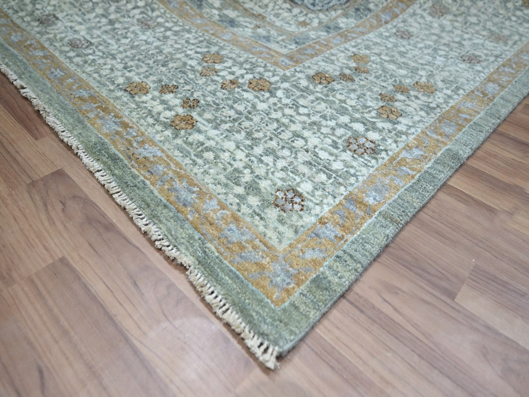 8'1" x 10'1" New Hand Knotted Green Wool Rectangle Oriental Rug - MOA10276860