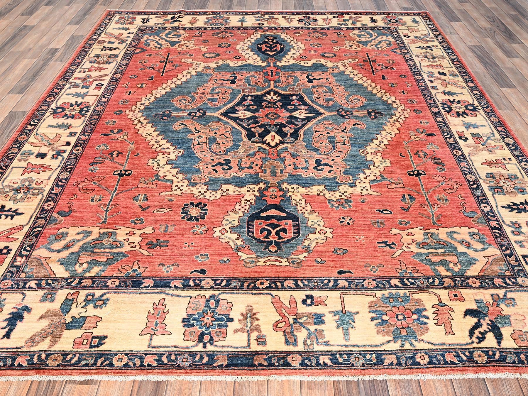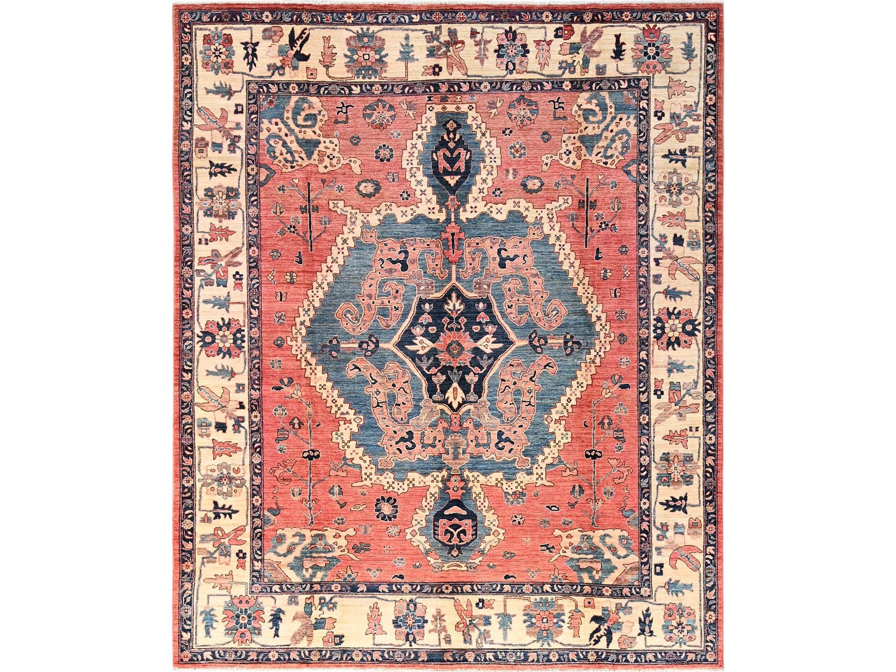 8'2" x 9'5" New Hand Knotted Red Wool Rectangle Oriental Rug - MOA1021598