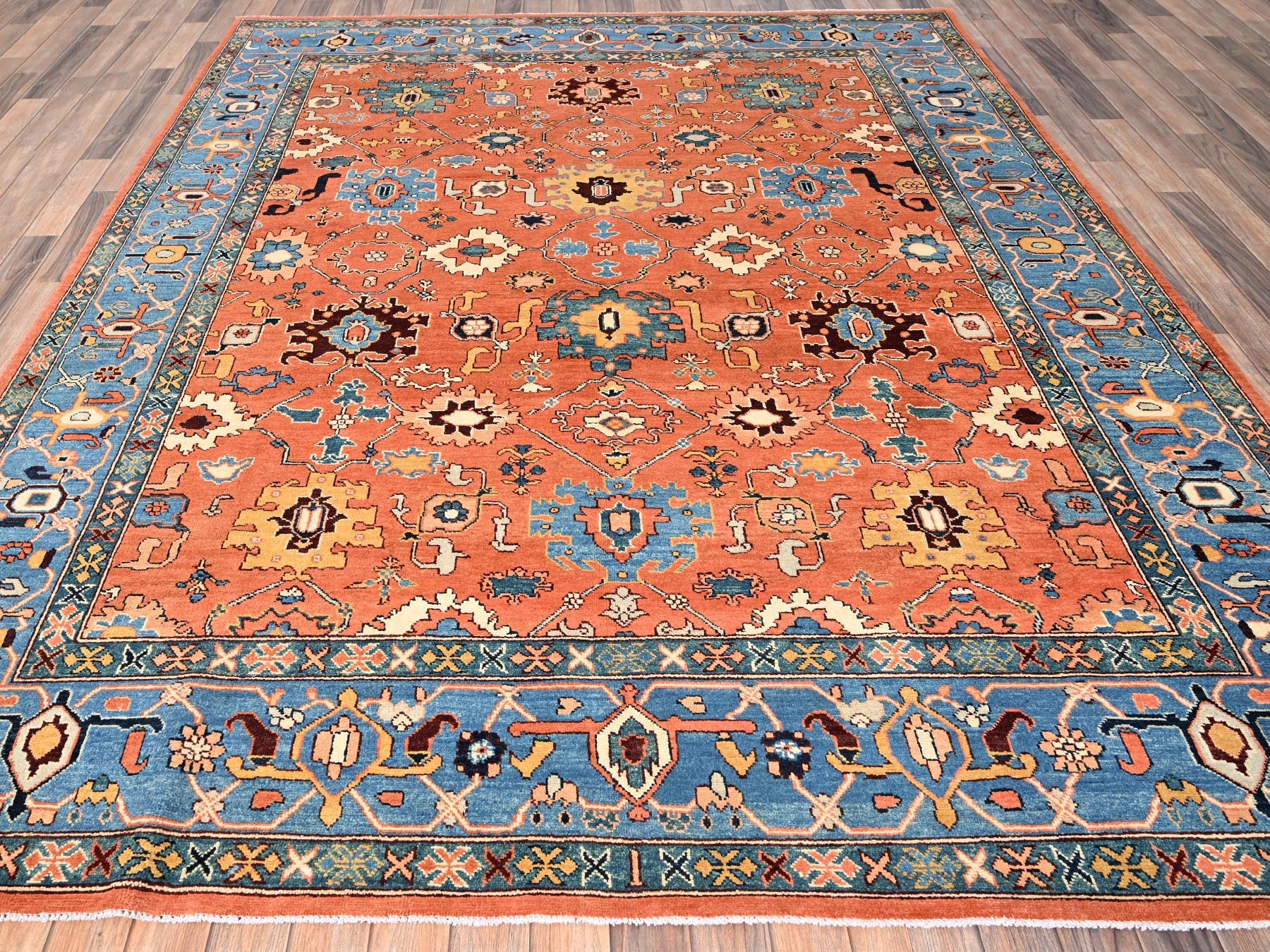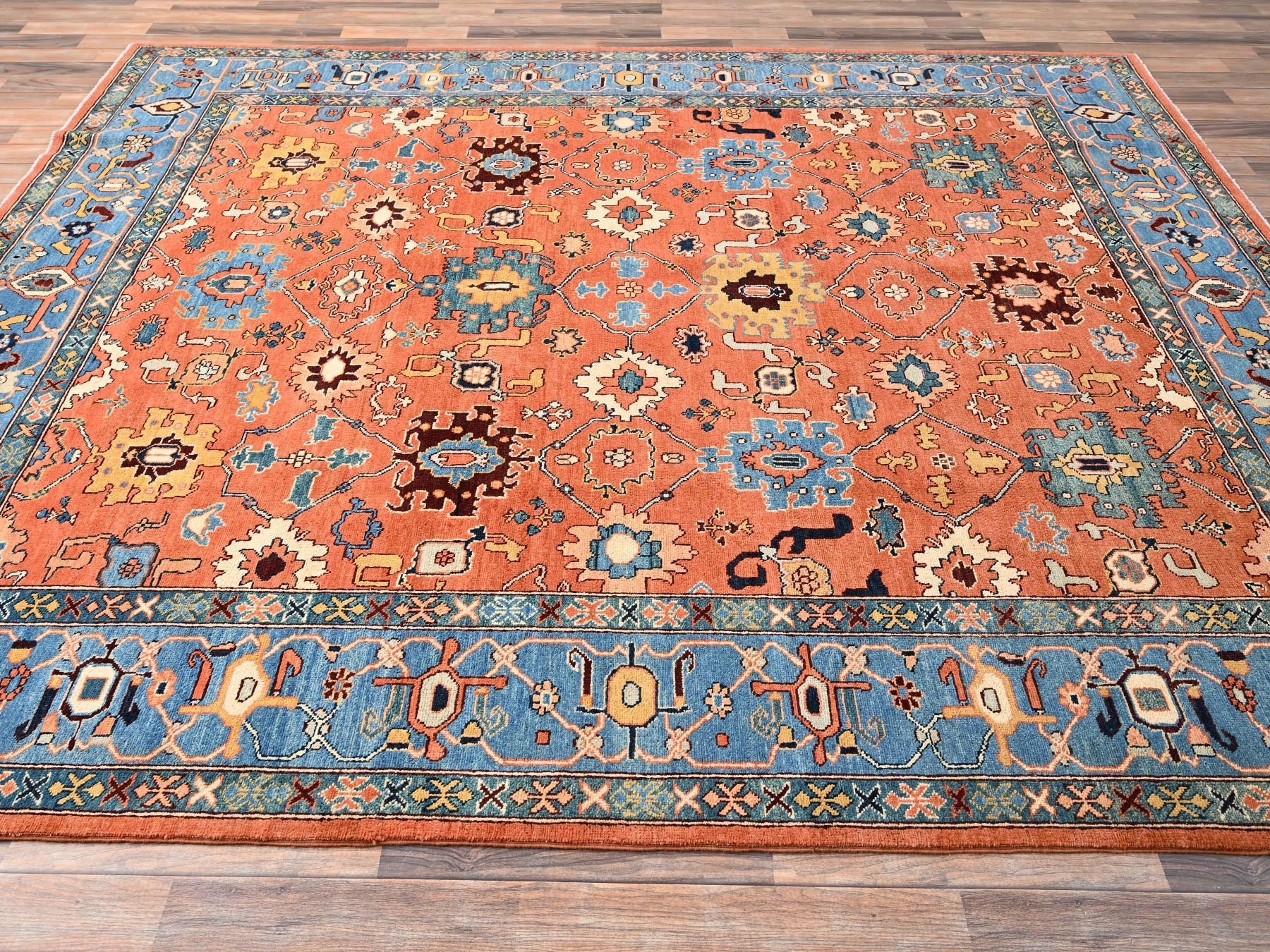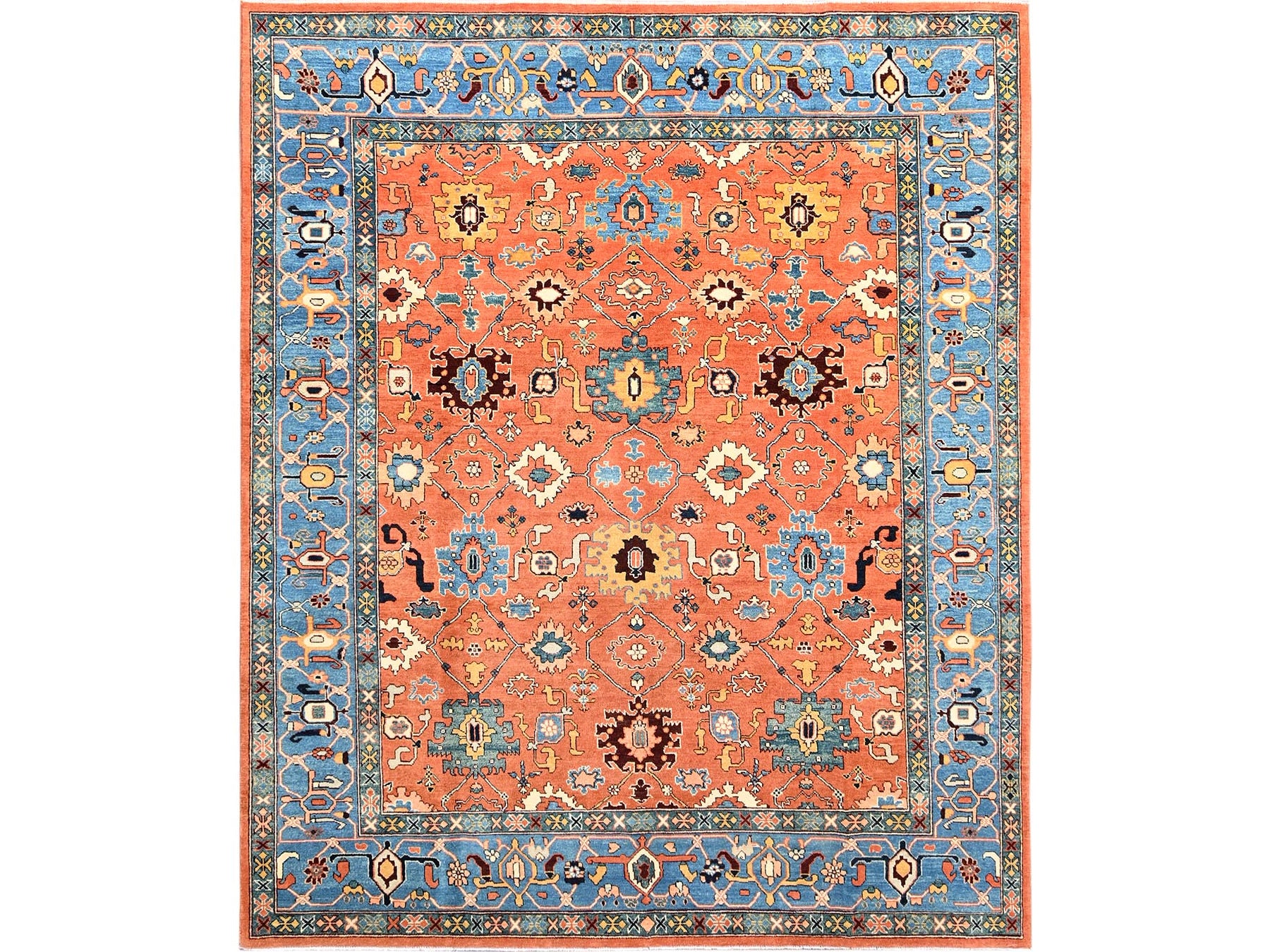 8'2" x 9'8" New Hand Knotted Orange Wool Rectangle Oriental Rug - MOA1021488