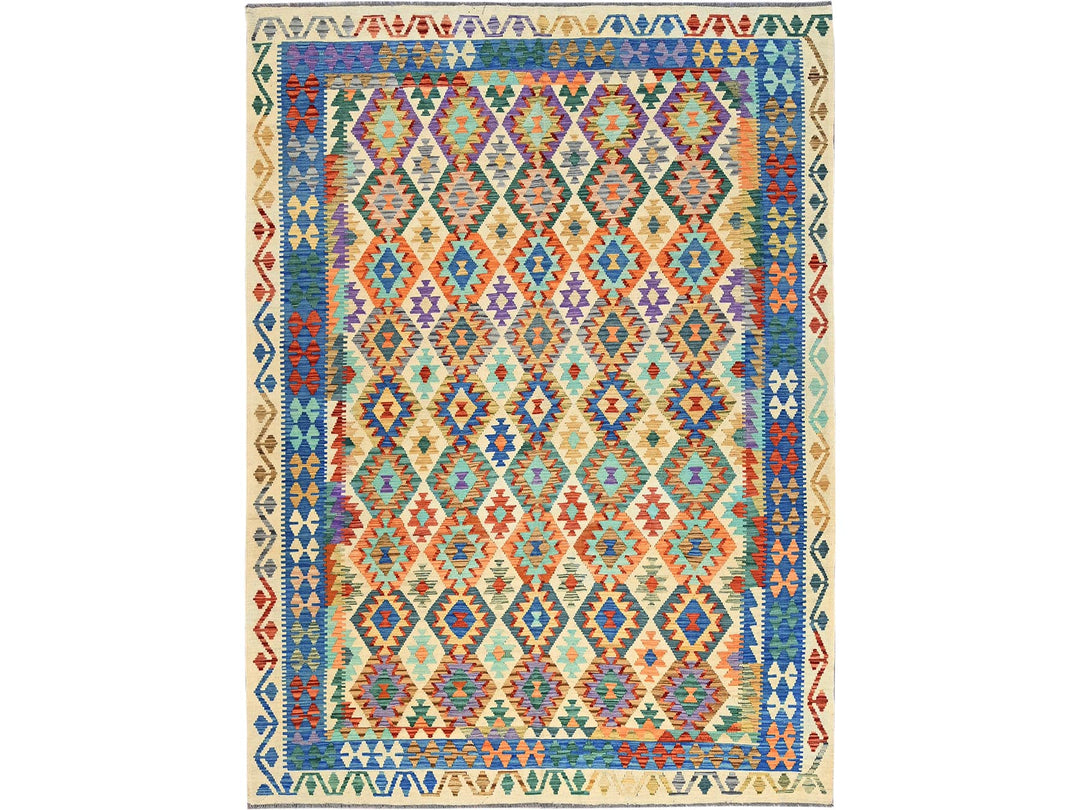 8'4" x 11'5" New Hand Woven Ivory Wool Rectangle Oriental Rug - MOA1021217