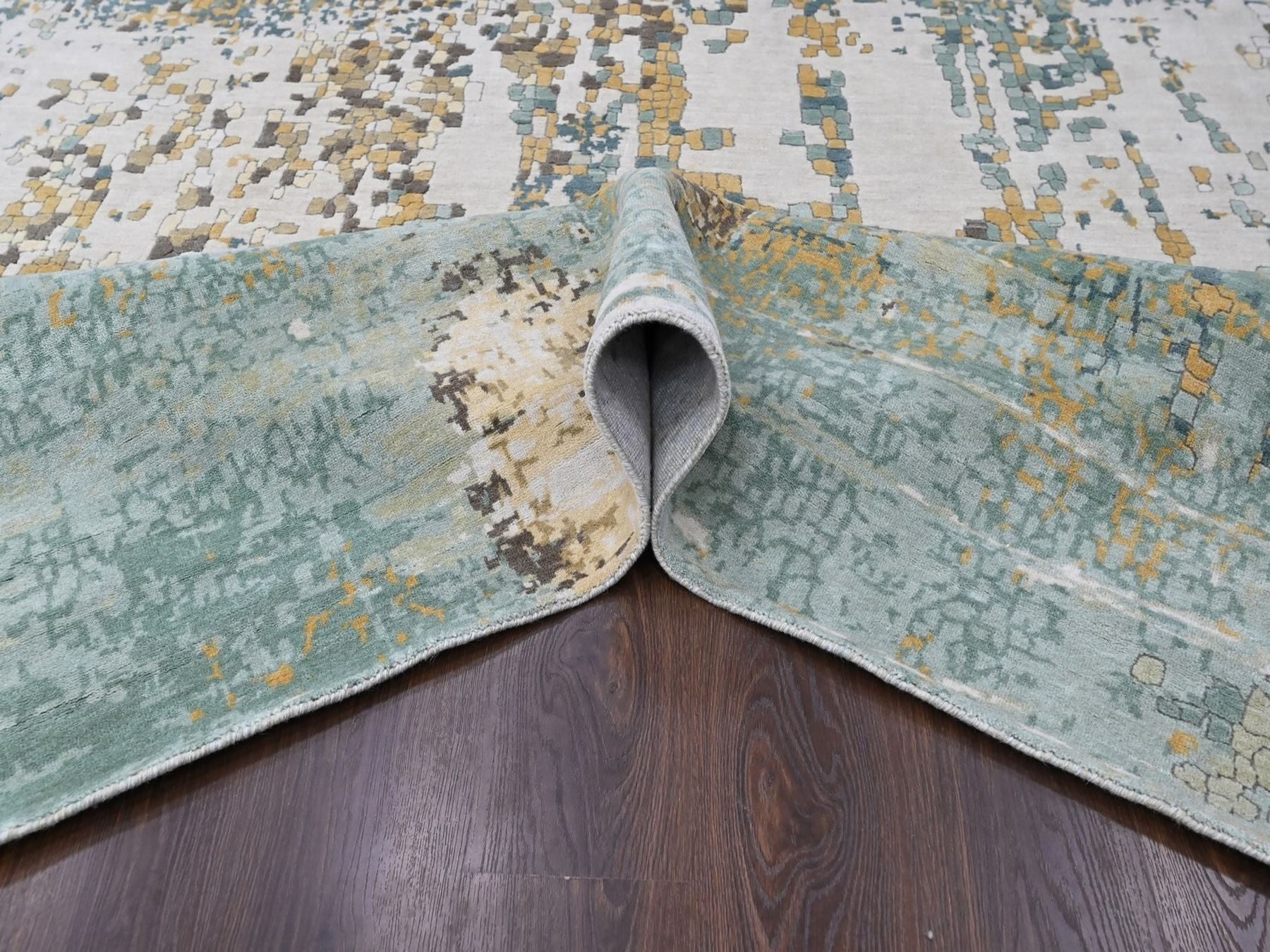 8'10" x 11'11" New Hand Knotted Ivory Wool & Silk Rectangle Oriental Rug - MOA10210434