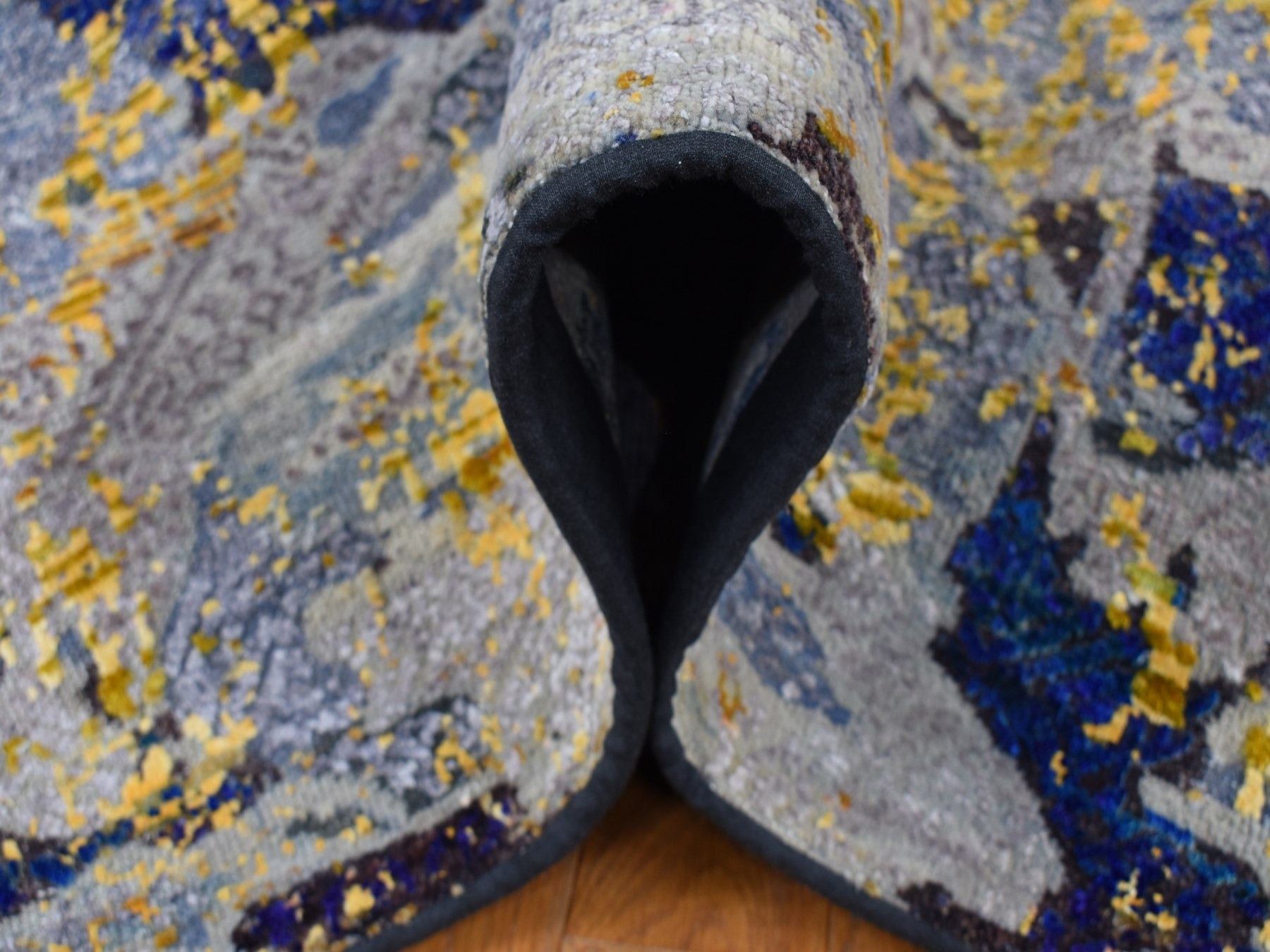 8'10" x 12'5" New Hand Knotted Yellow Wool & Silk Rectangle Oriental Rug - MOA10287130