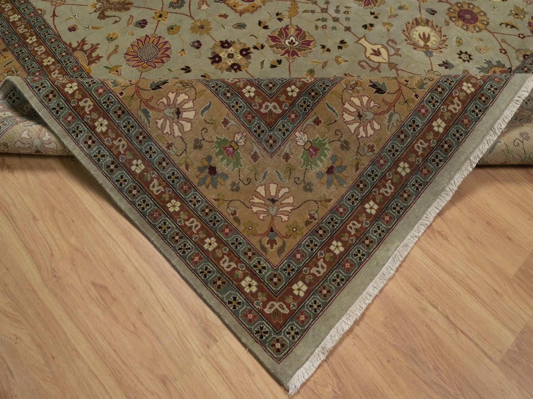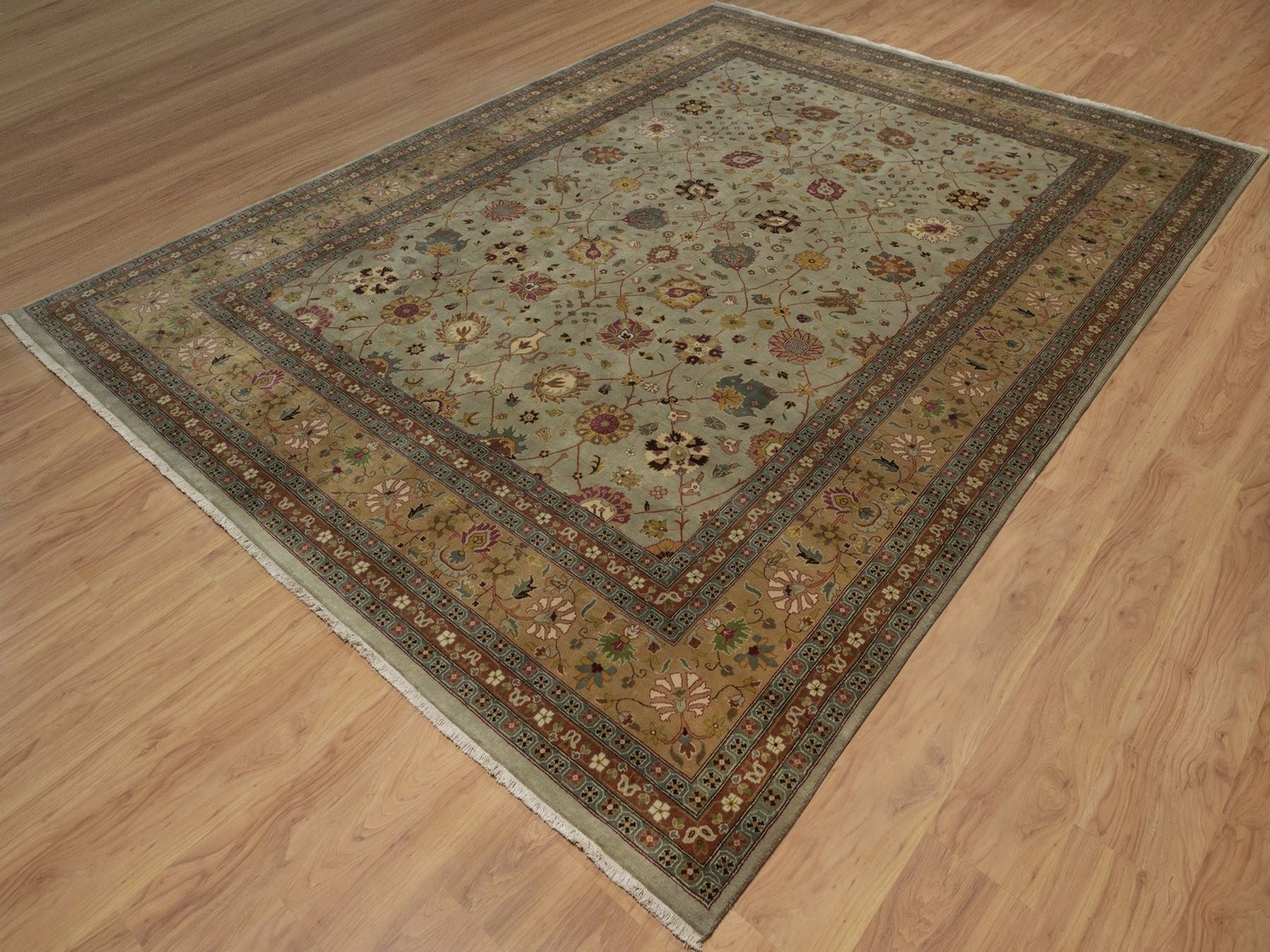 8'11" x 12'1" New Hand Knotted Green Wool Rectangle Oriental Rug - MOA10292357