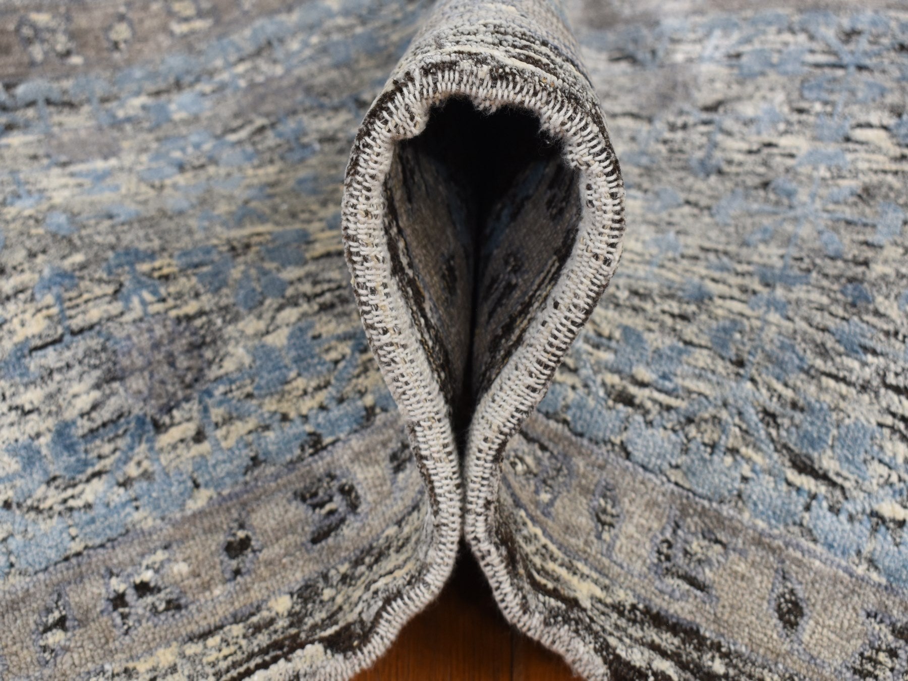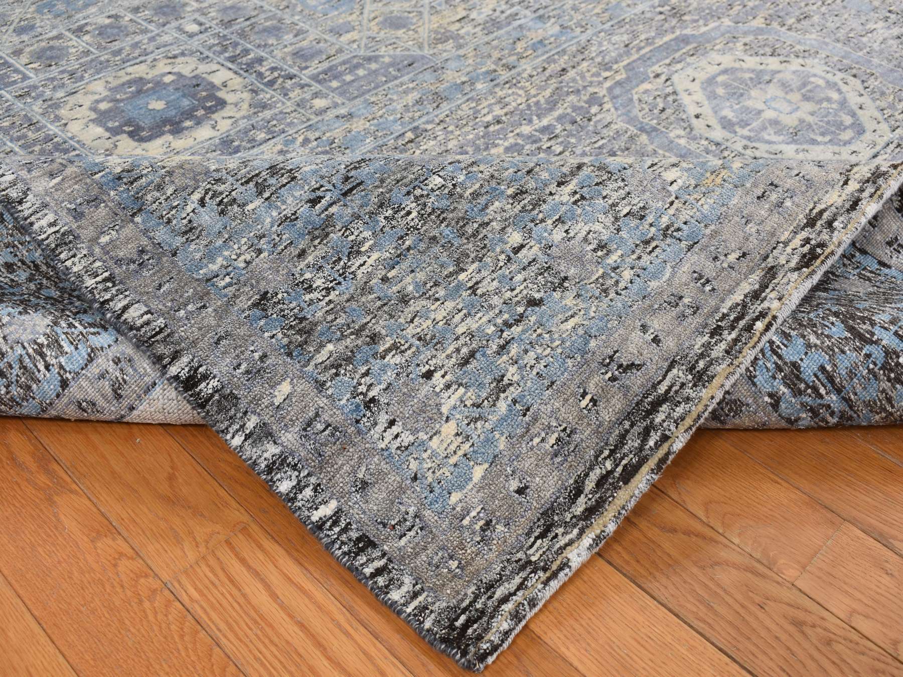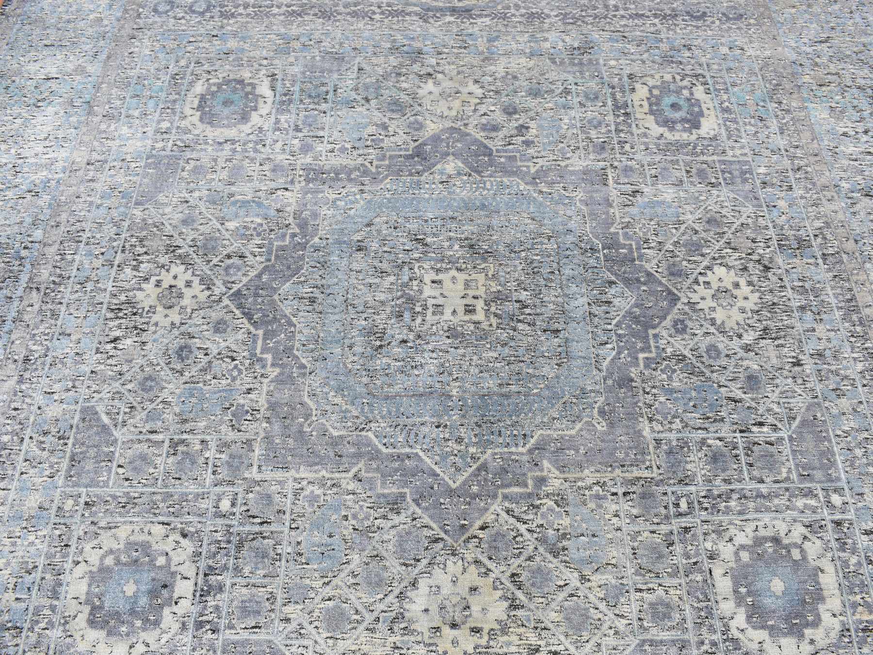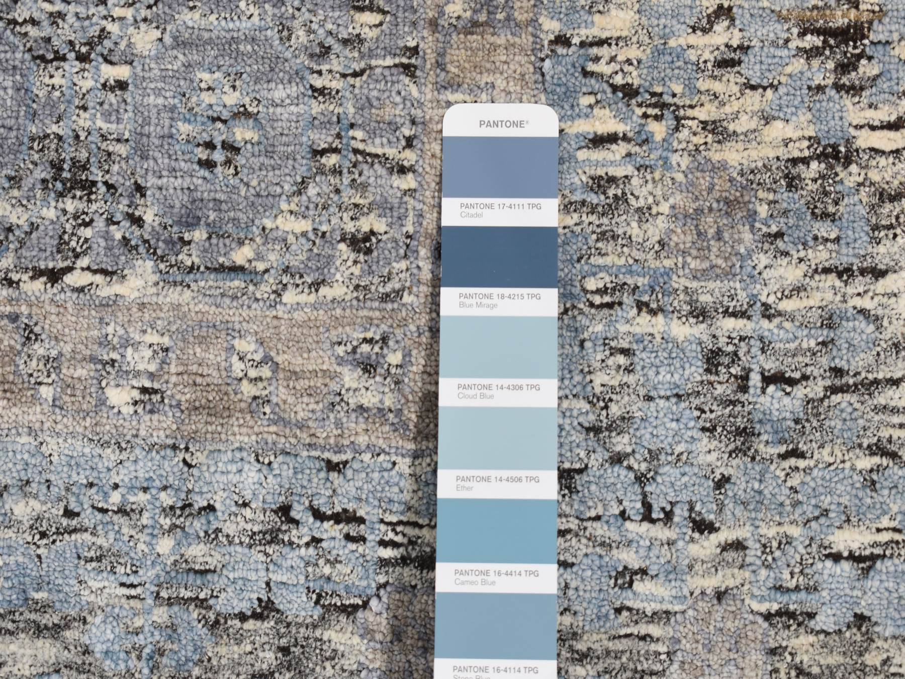 8'8" x 11'10" New Hand Knotted Blue Wool & Silk Rectangle Oriental Rug - MOA10287143