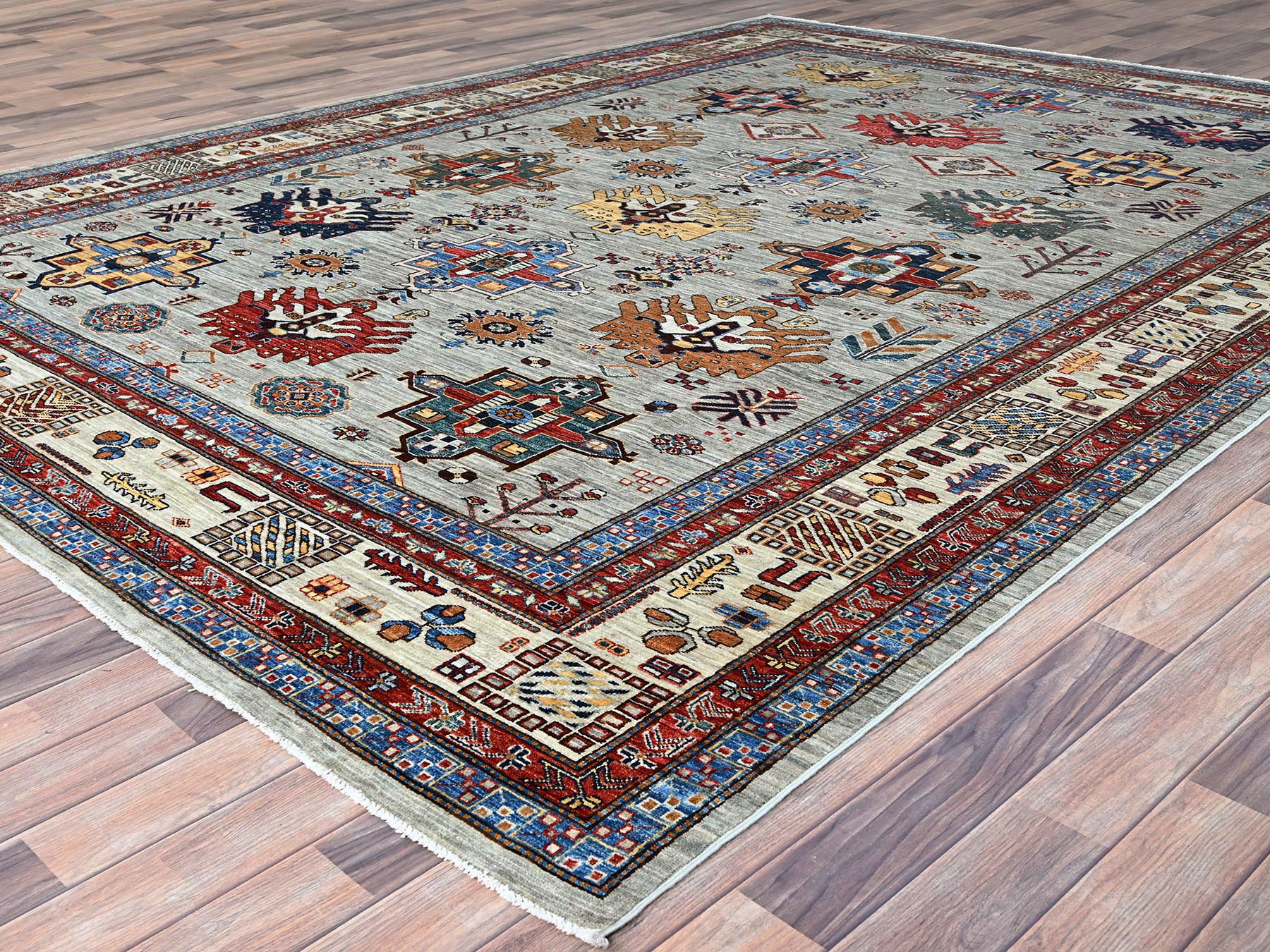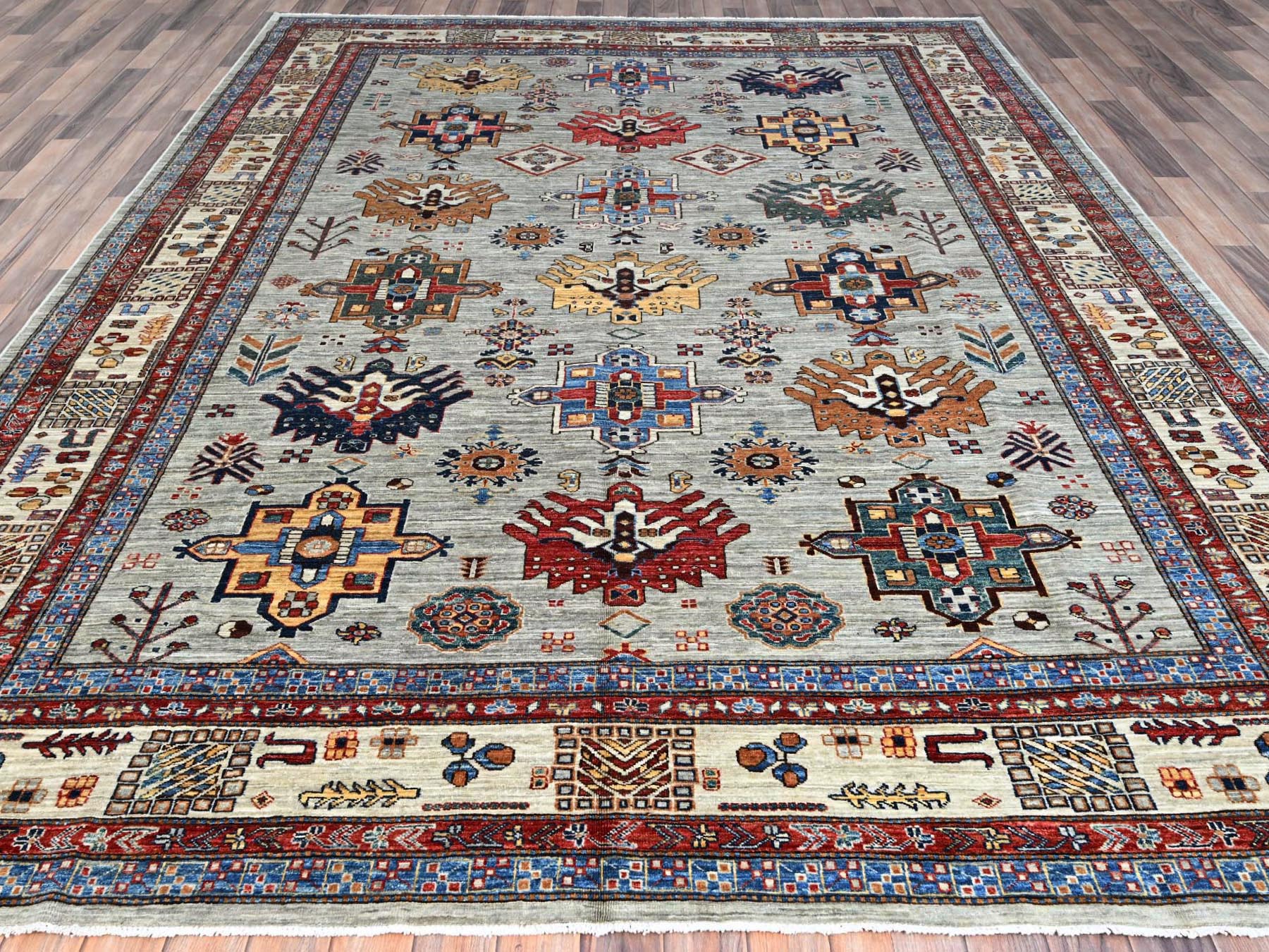 8'8" x 11'9" New Hand Knotted Grey Wool Rectangle Oriental Rug - MOA10286537