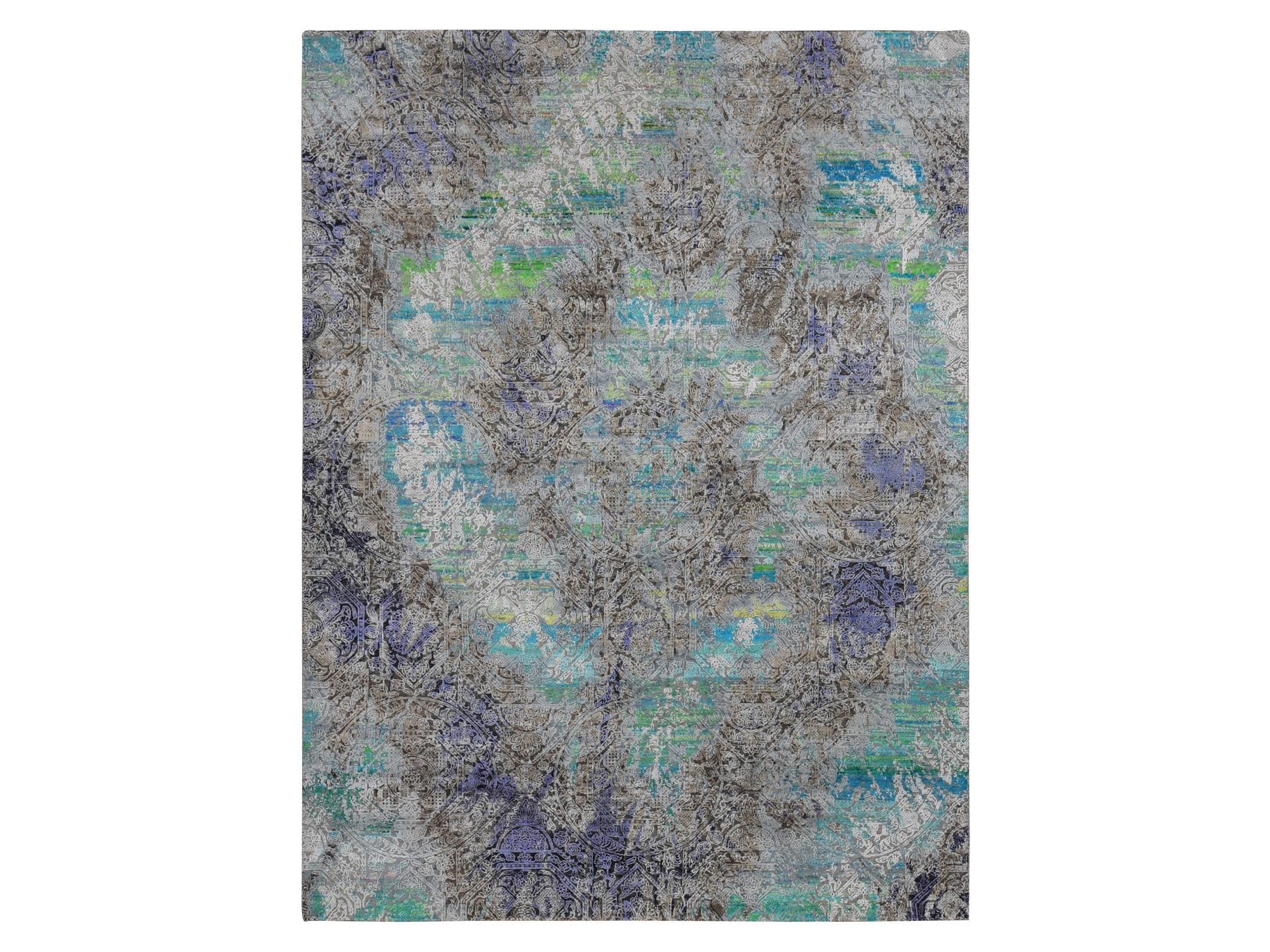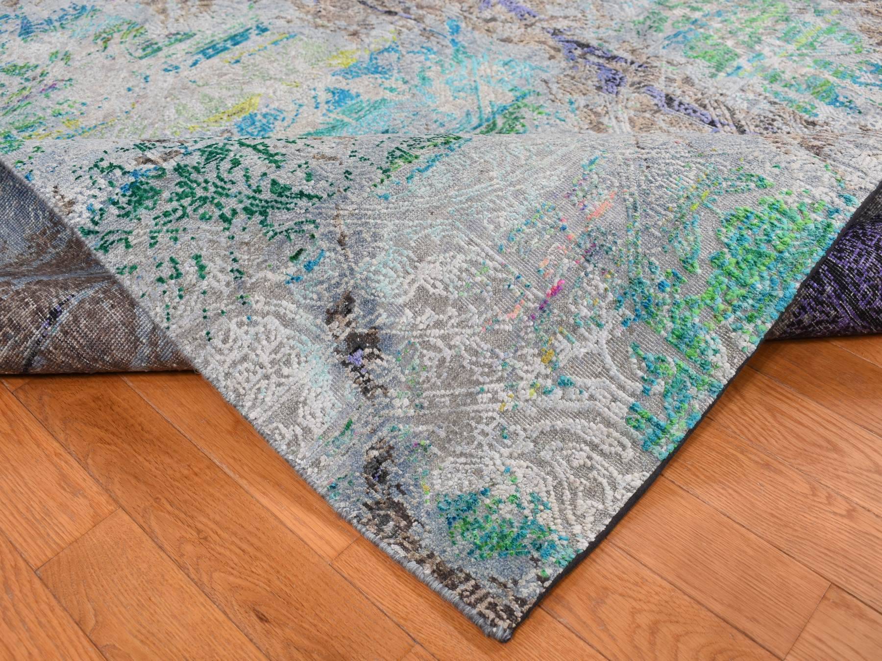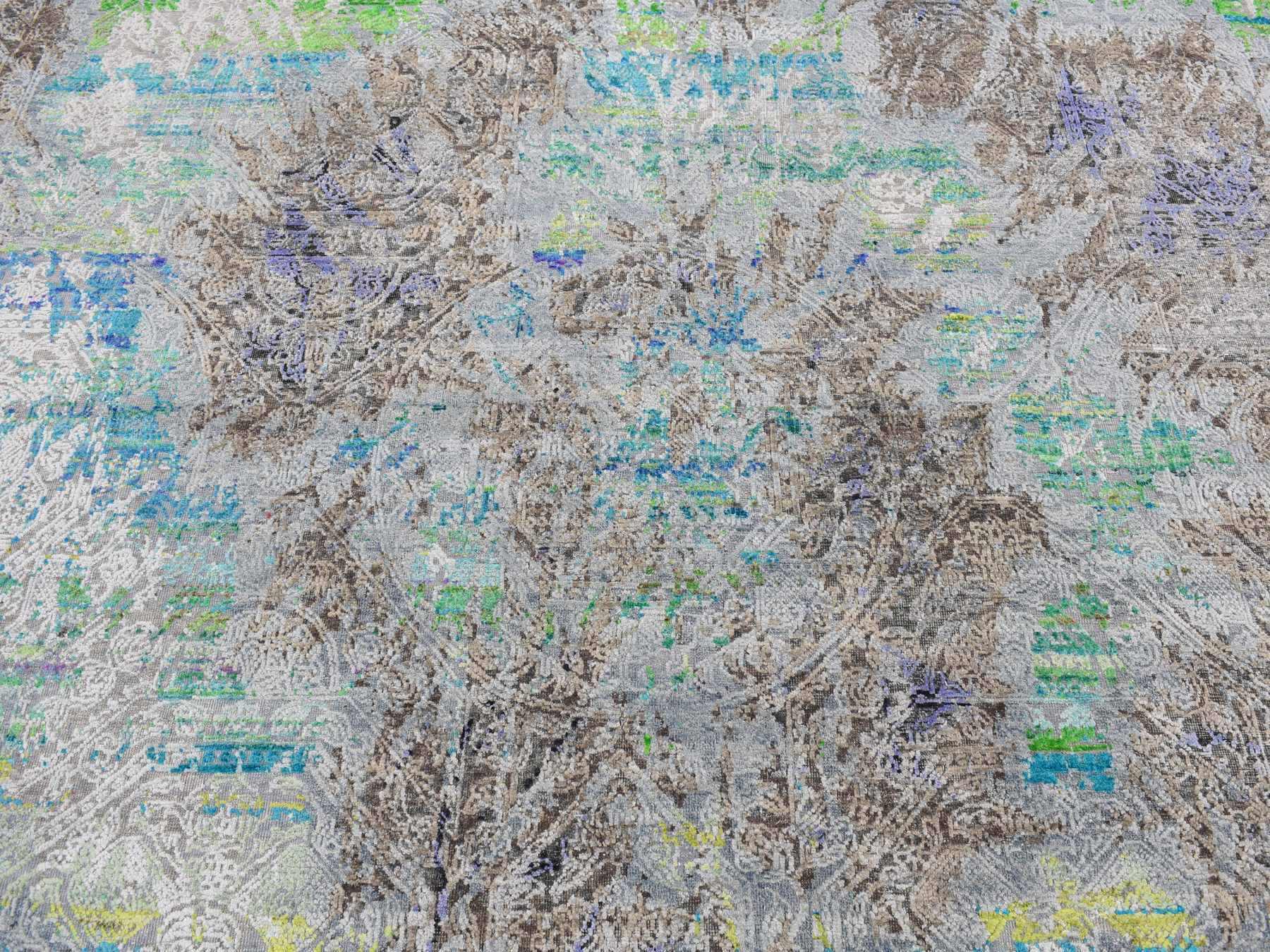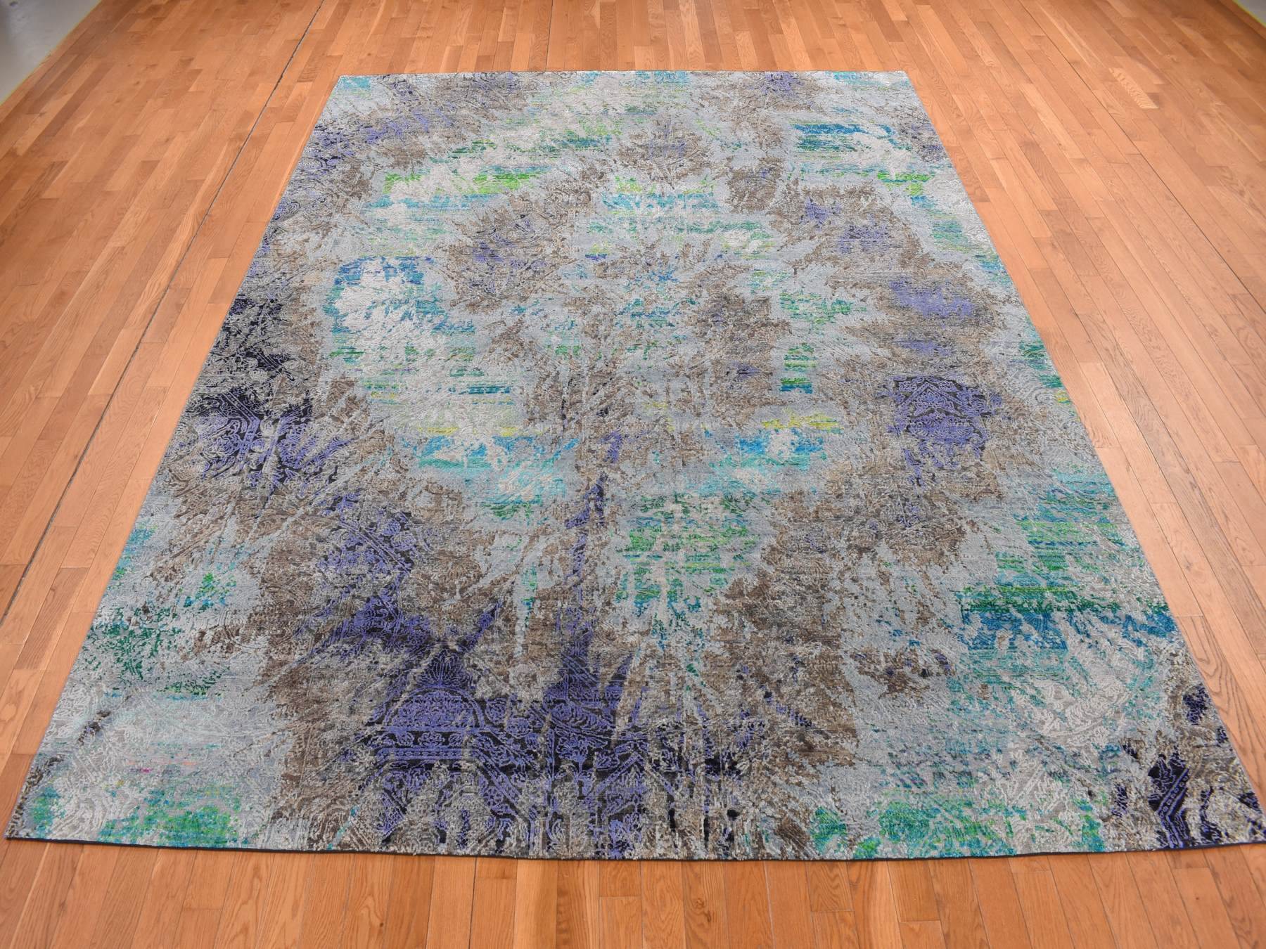 8'9" x 11'10" New Hand Knotted Grey Sari Silk Rectangle Oriental Rug - MOA10287097
