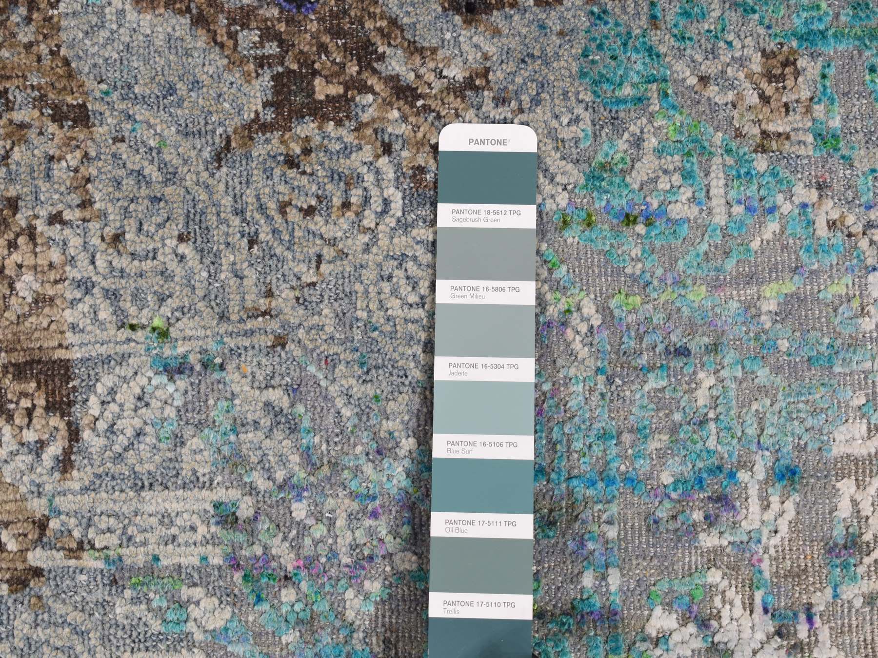 Bistre Brown, Tan Color, Turquoise, Ivory, Medium Purple, Green