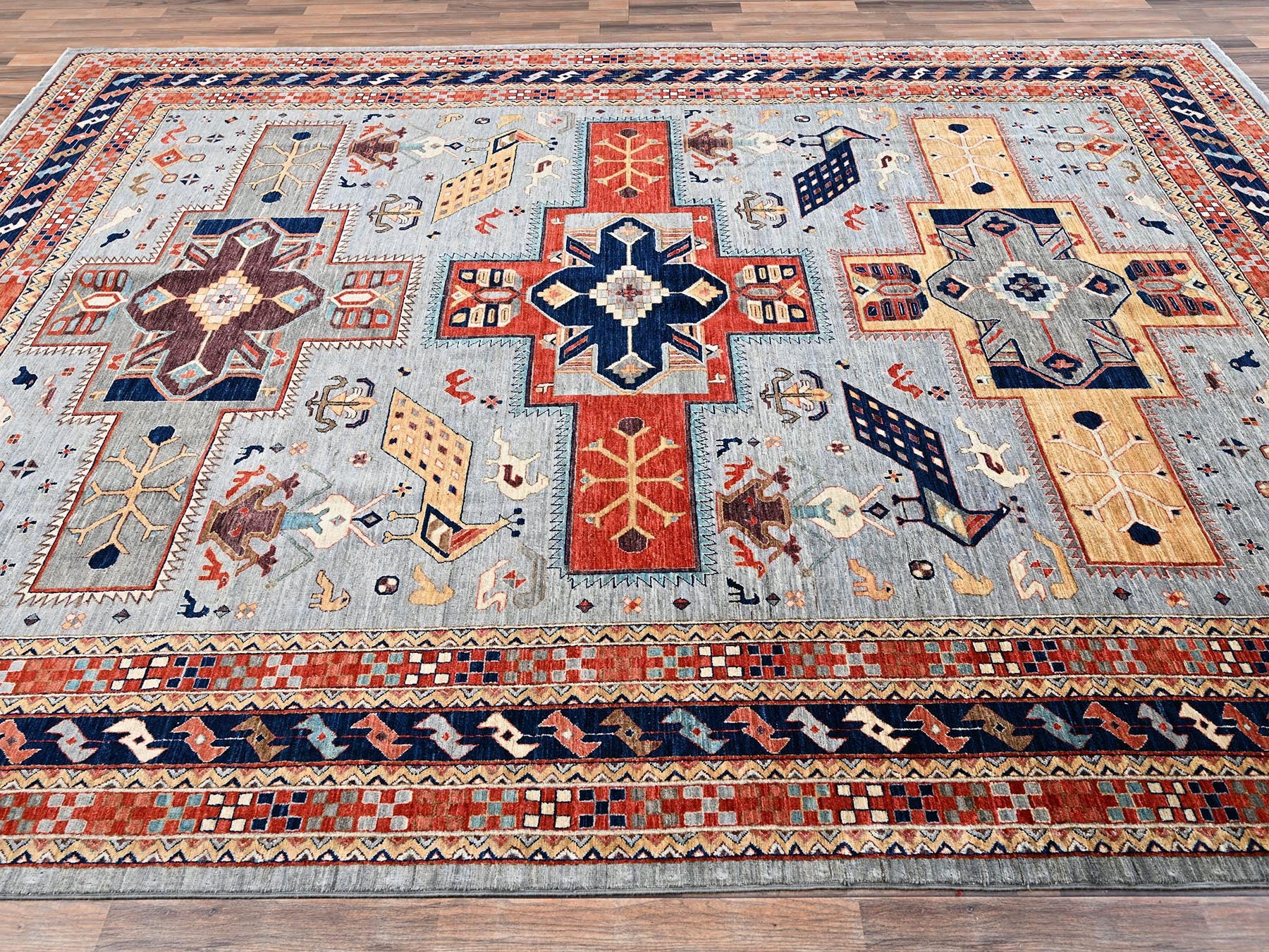 8'9" x 11'10" New Hand Knotted Grey Wool Rectangle Oriental Rug - MOA1022086