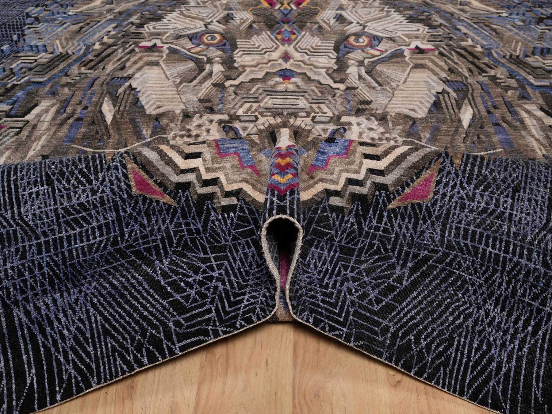 9'0" x 12'1" New Hand Knotted Black Wool & Silk Rectangle Oriental Rug - MOA10292056
