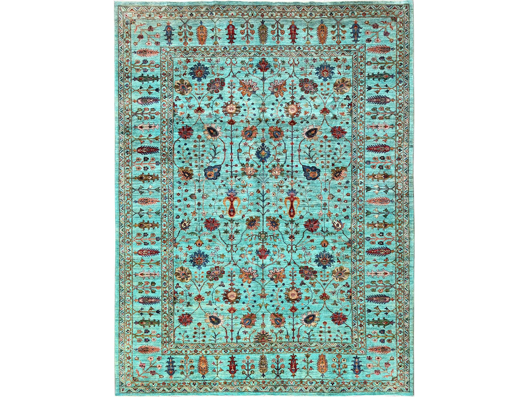 9'0" x 12'1" New Hand Knotted Blue Wool Rectangle Oriental Rug - MOA1021814
