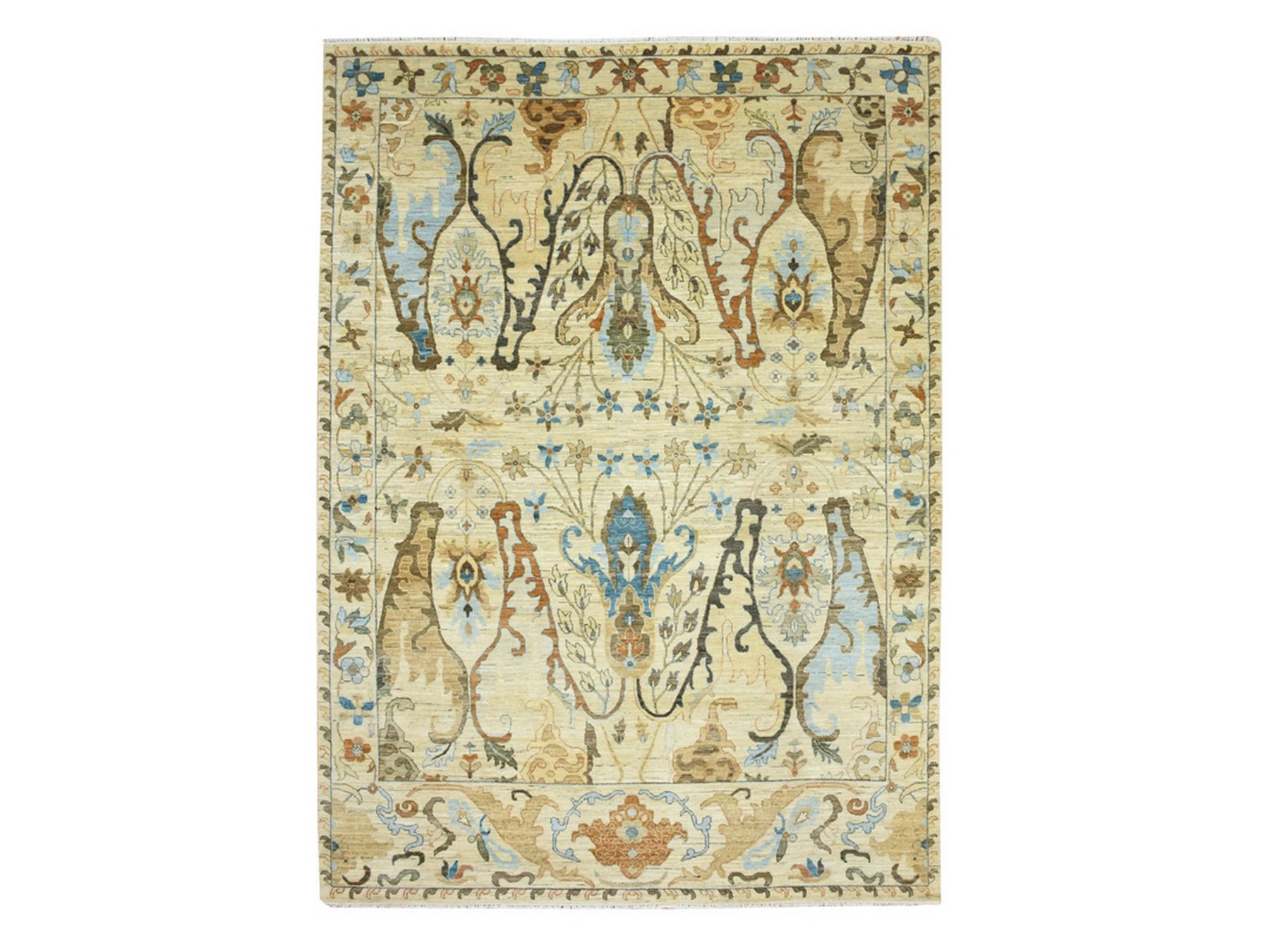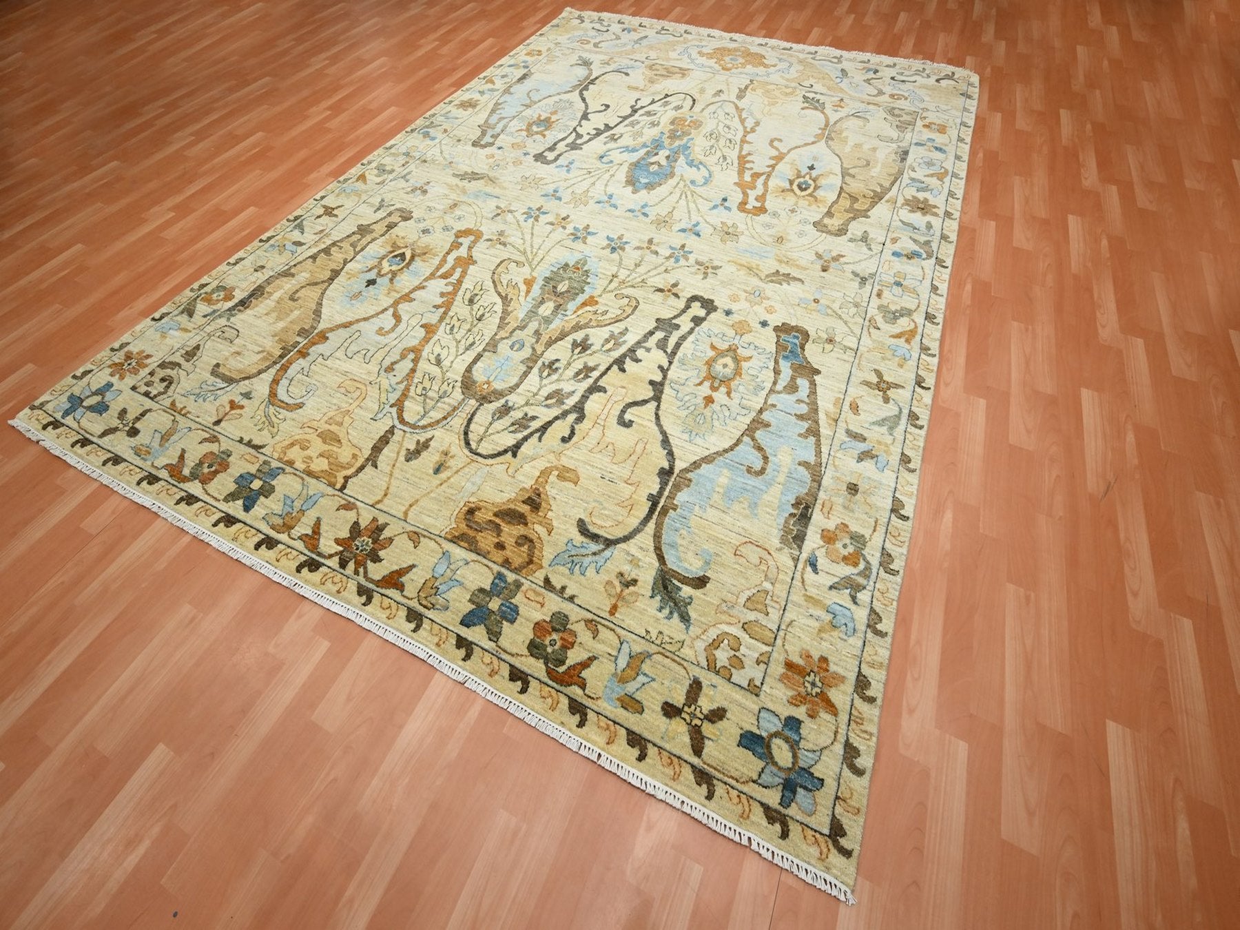 9'0" x 12'5" New Hand Knotted Beige Wool Rectangle Oriental Rug - MOA10275866