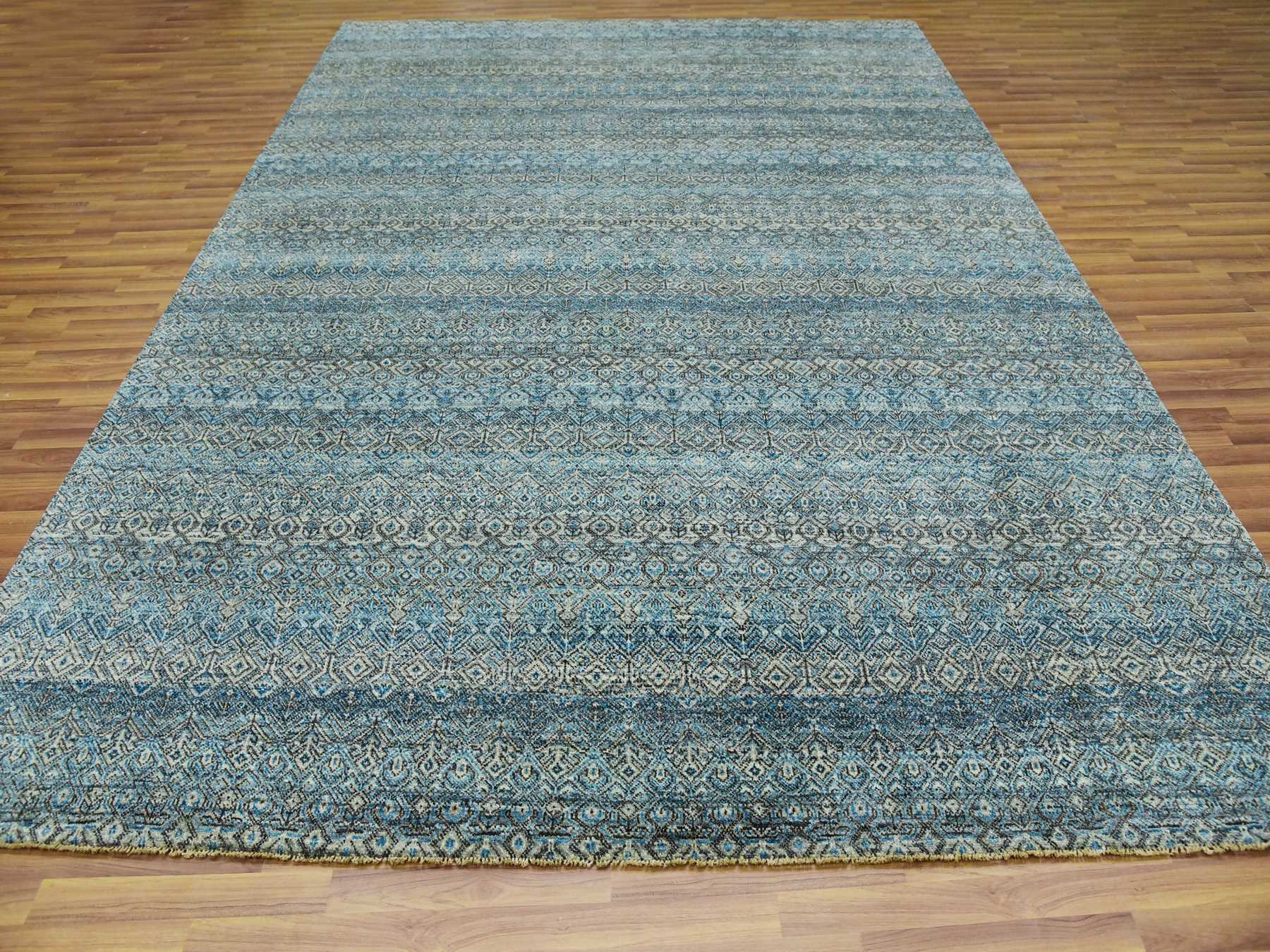 9'1" x 12'0" New Hand Knotted Blue Wool Rectangle Oriental Rug - MOA10279678