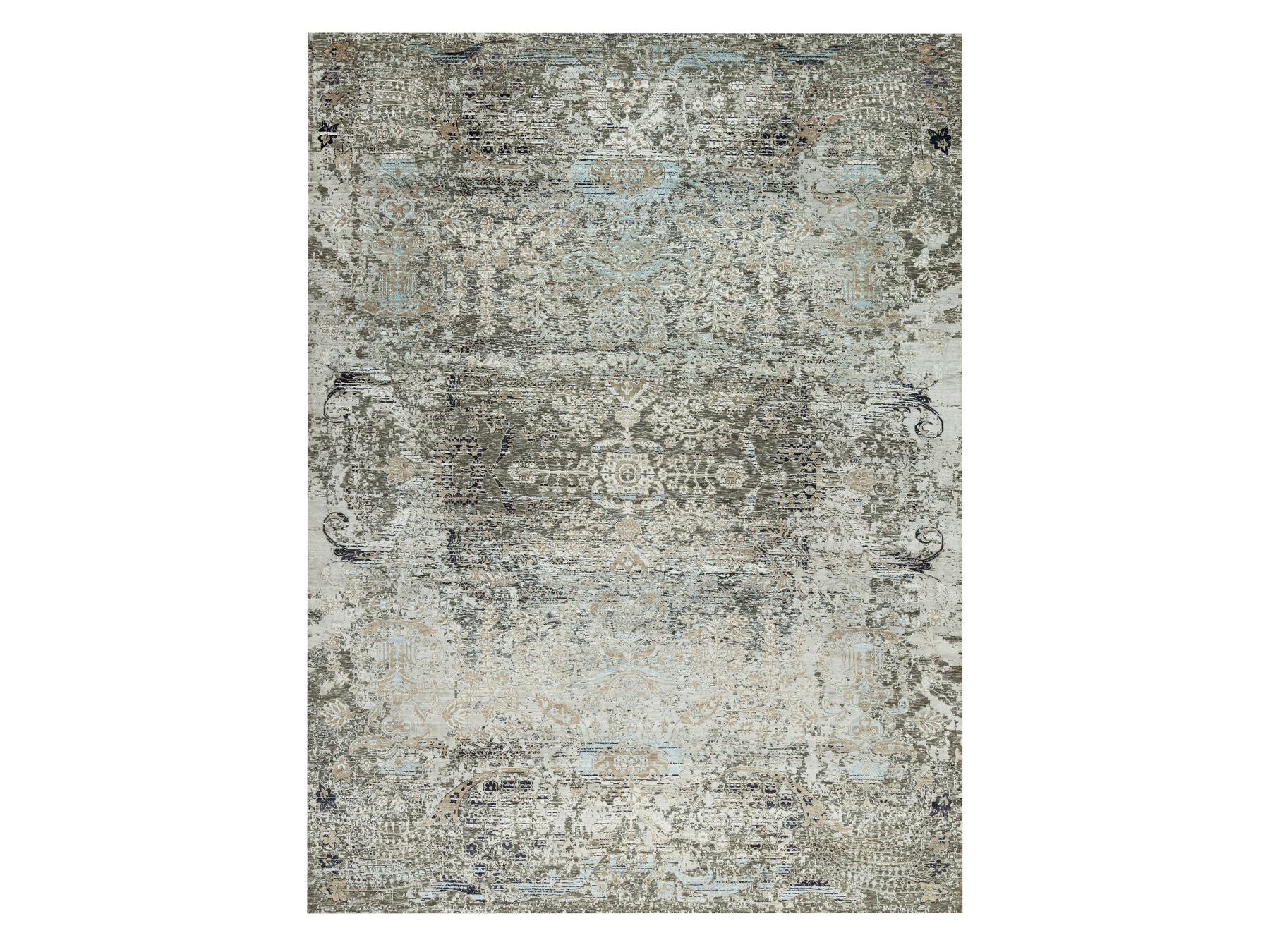 9'1" x 12'2" New Hand Knotted Grey Wool & Silk Rectangle Oriental Rug - MOA10290698