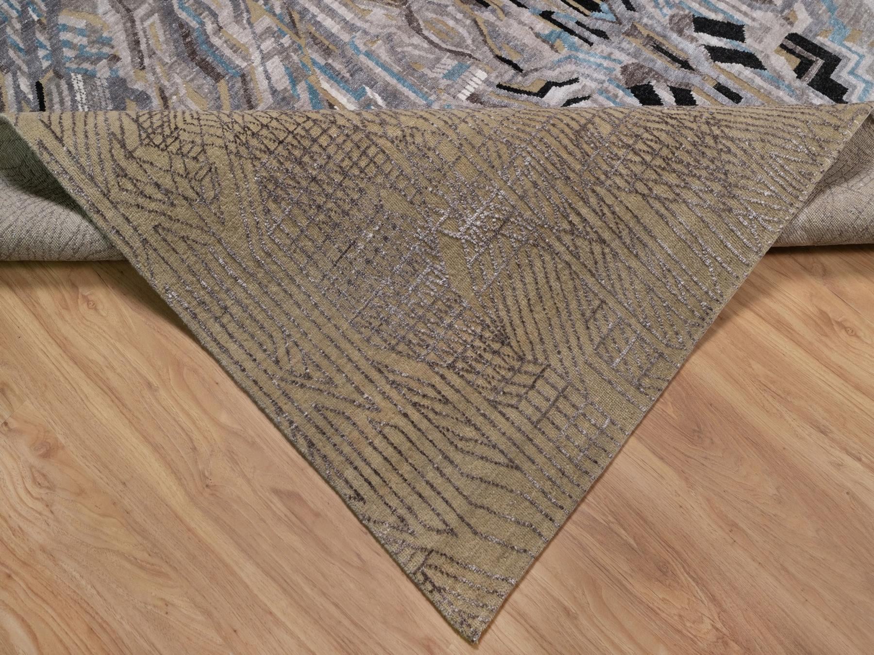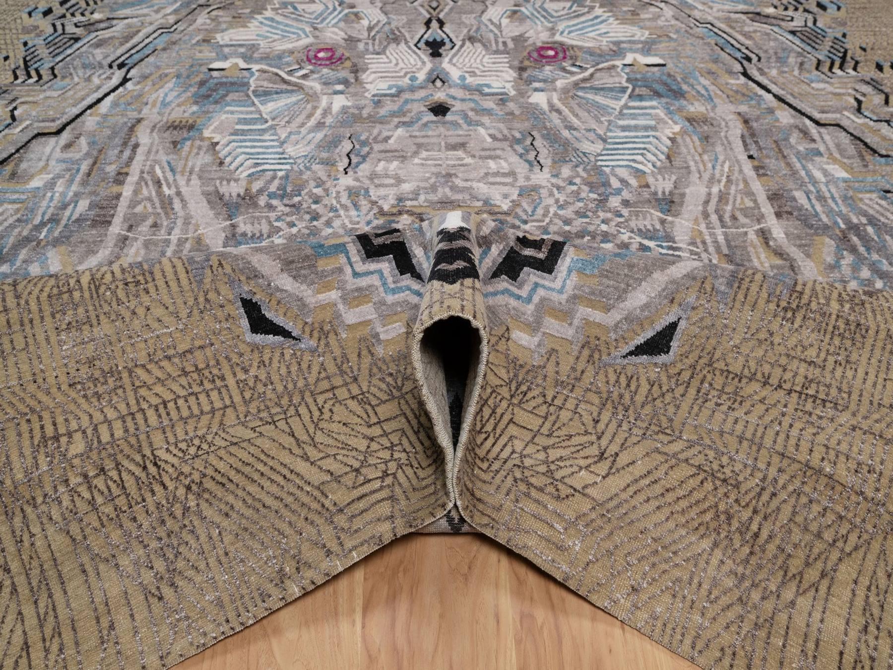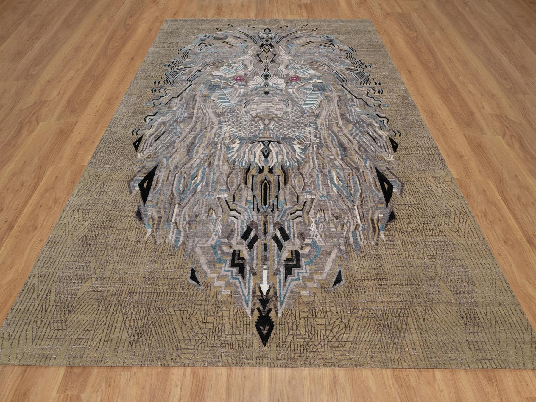 9'1" x 12'3" New Hand Knotted Brown Wool & Silk Rectangle Oriental Rug - MOA10292090