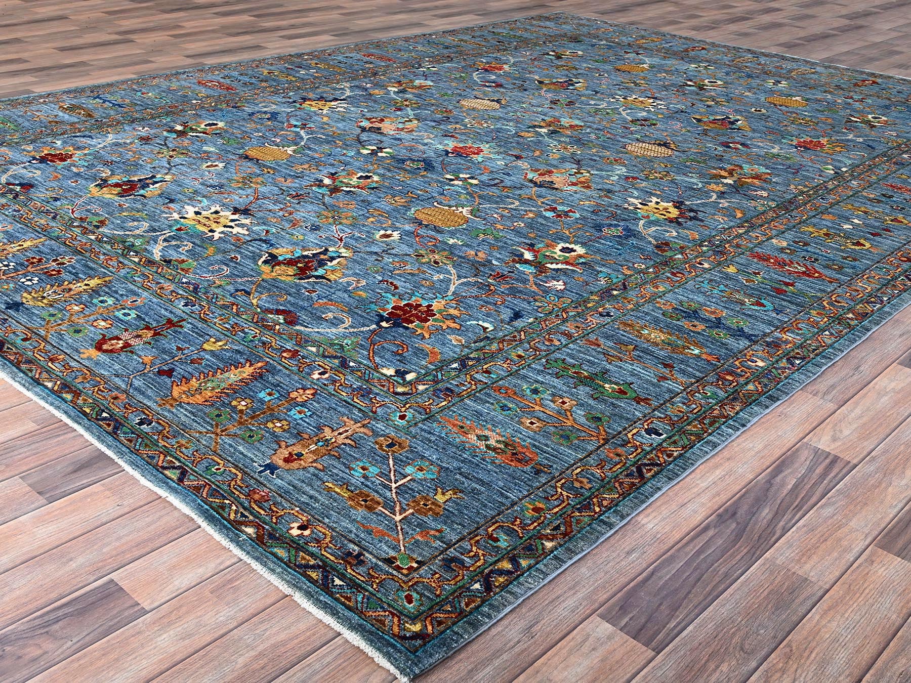 9'2" x 12'8" New Hand Knotted Blue Wool Rectangle Oriental Rug - MOA10286731